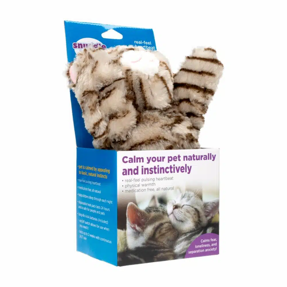 El Juguete para Mascota Gato a Rayas SNUGGLE PUPPY Pequeño es una versión adaptada del popular juguete SNUGGLE PUPPY, pero diseñado específicamente para gatos. Este juguete ofrece entretenimiento, compañía y comodidad para los felinos, con características que estimulan su instinto natural de caza y juego