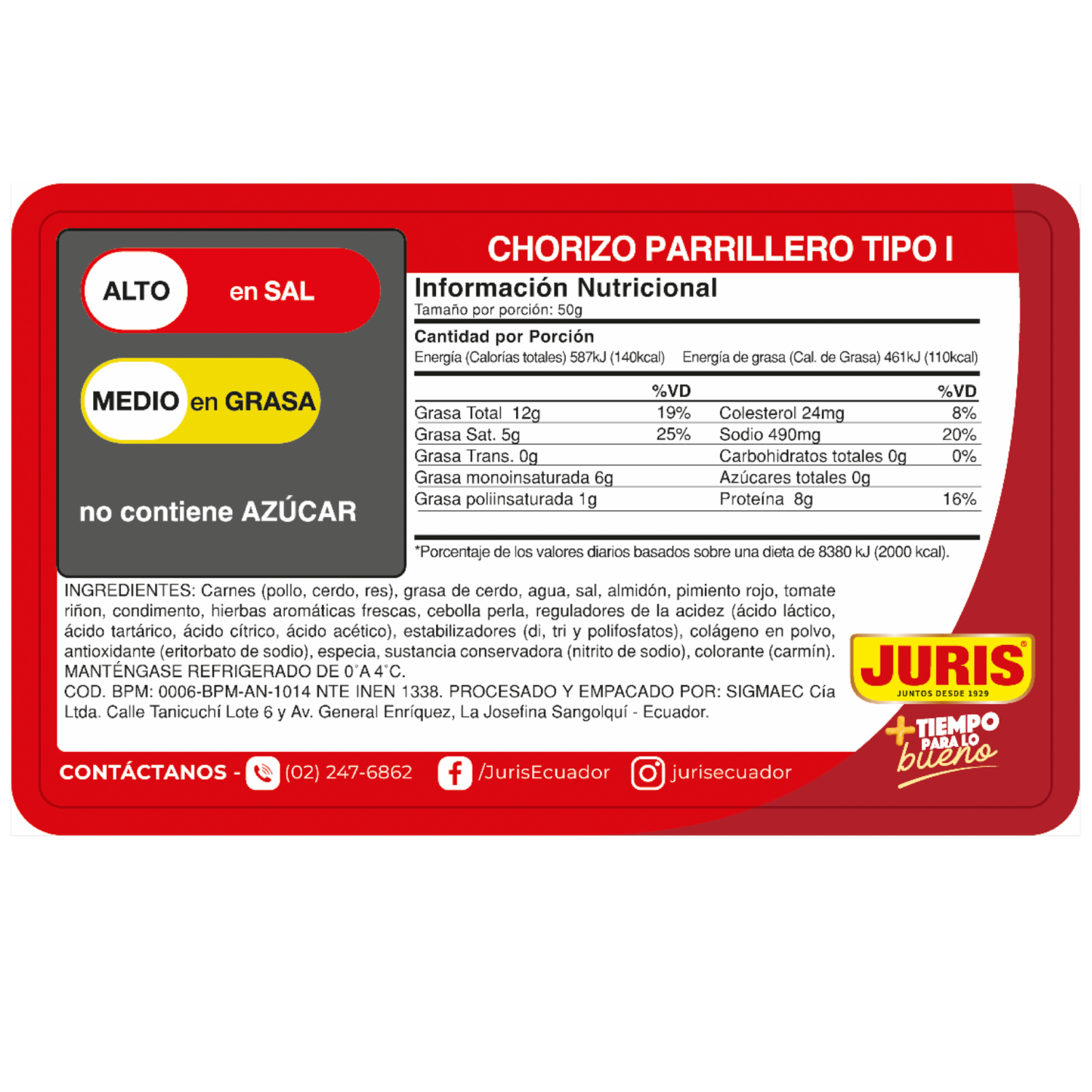 Chorizo Parrillero Tipo I JURIS 6 Uds 300 G
