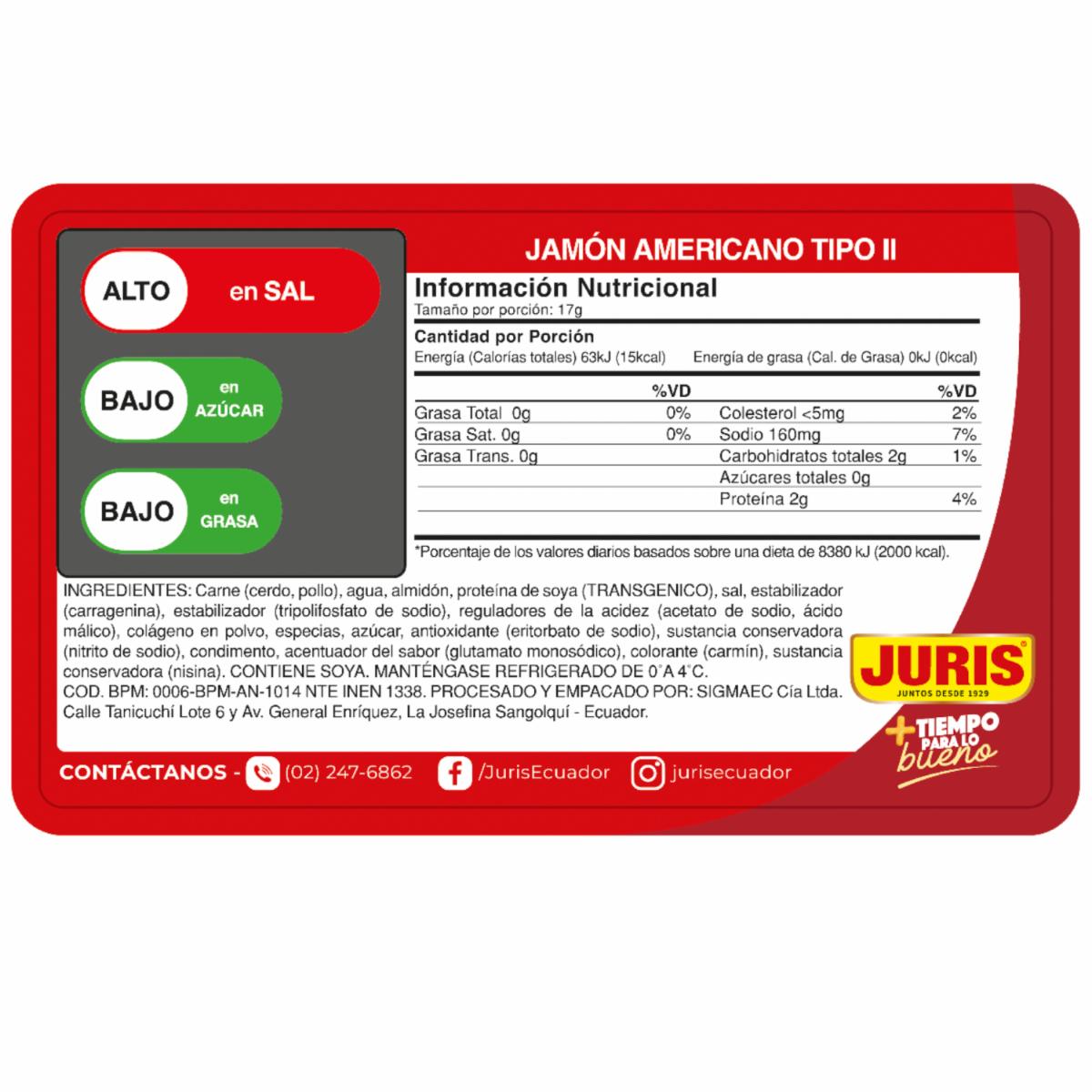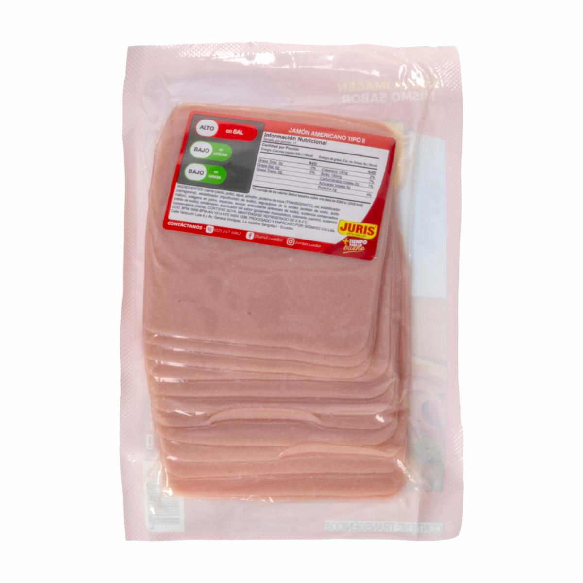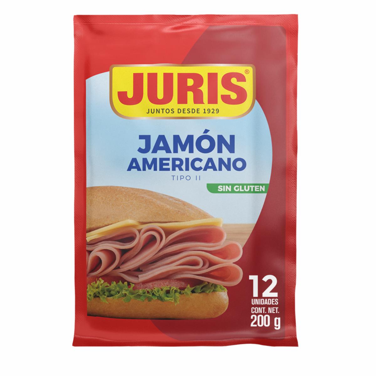 consultando preciosJamón Americano JURIS 200 G – JURIS. Disponible en nuestros locales. Precio y stock pueden variar según la tienda.