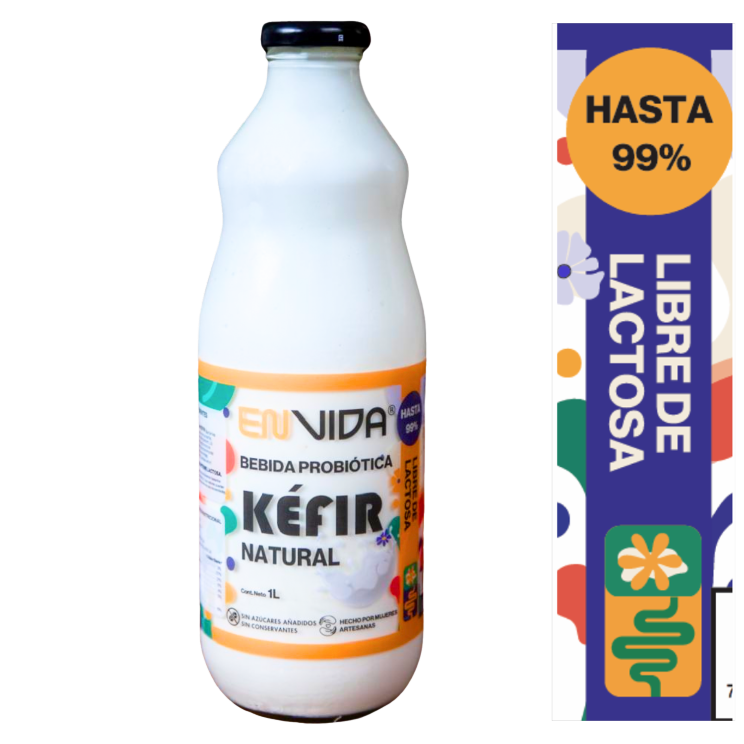 - El kefir natural envida es un probiótico que contiene una gran cantidad de bacterias beneficiosas para la salud intestinal. Ayuda a mejorar la digestión y fortalecer el sistema inmunológico. Es una fuente de calcio, proteínas y vitaminas del complejo B. Además contribuye a mantener un equilibrio en la flora intestinal y a prevenir el estreñimiento