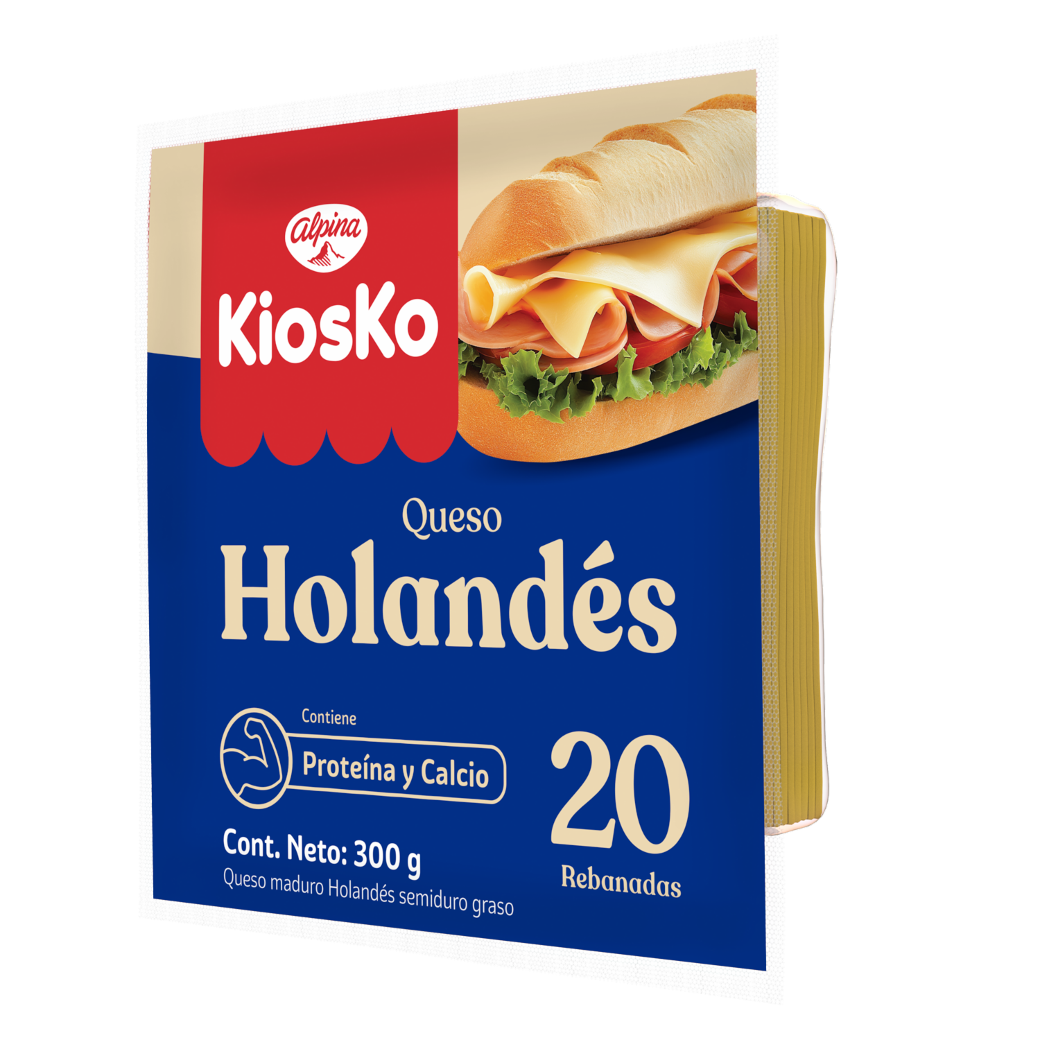 - Queso HolandéS Lonjas KIOSKO 300 g. Producto lácteo, fuente de proteína y calcio