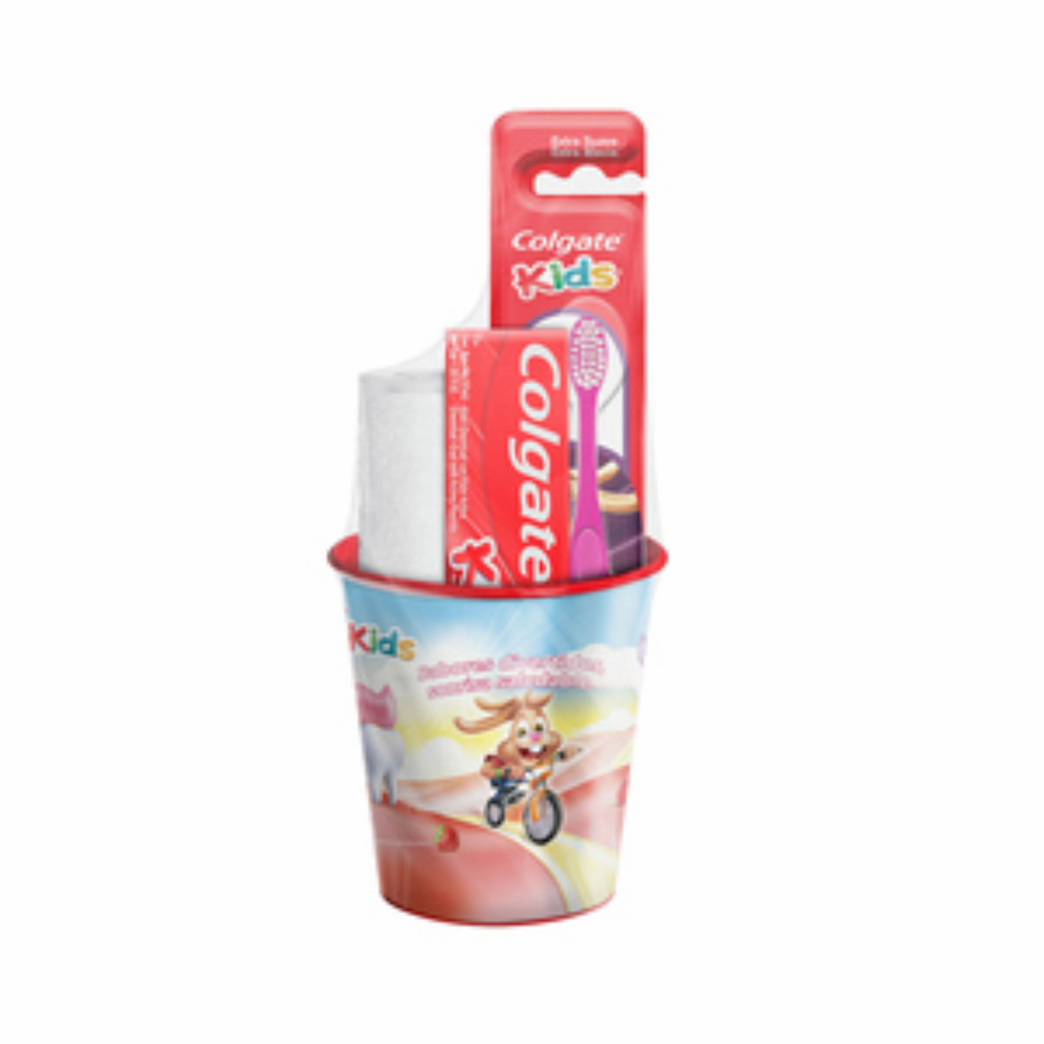 Kit Higiene Bucal Escolar Pasta + Cepillo +Toalla + Vaso COLGATE 1 X 4 Unidades