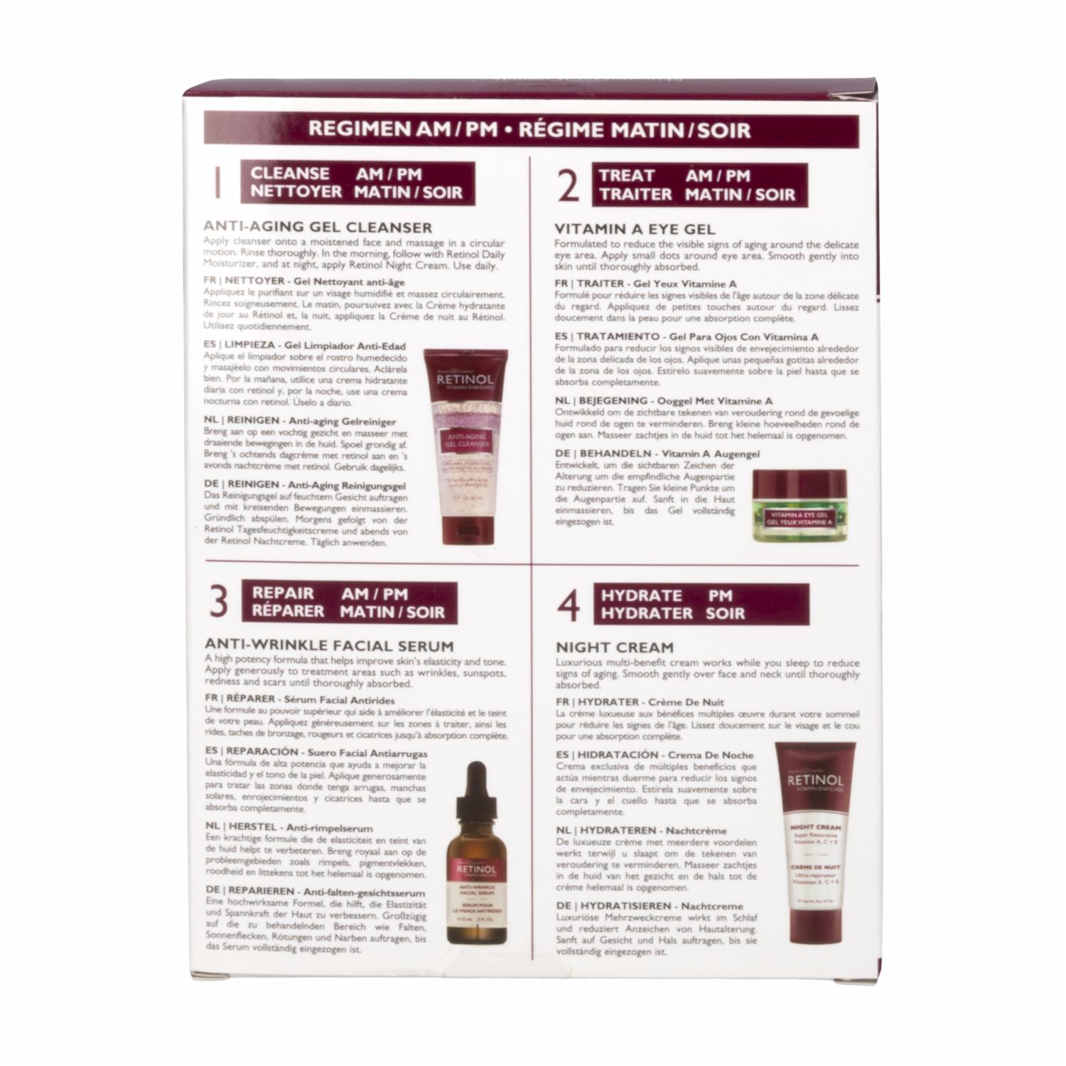 consultando preciosSet Facial Viajero Anti-Envejecimiento X4 RETINOL Paquete – RETINOL. Disponible en nuestros locales. Precio y stock pueden variar según la tienda.