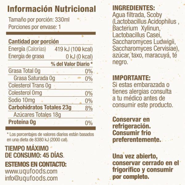 Kombucha Taxo Y Maracuya UQU 330 Ml