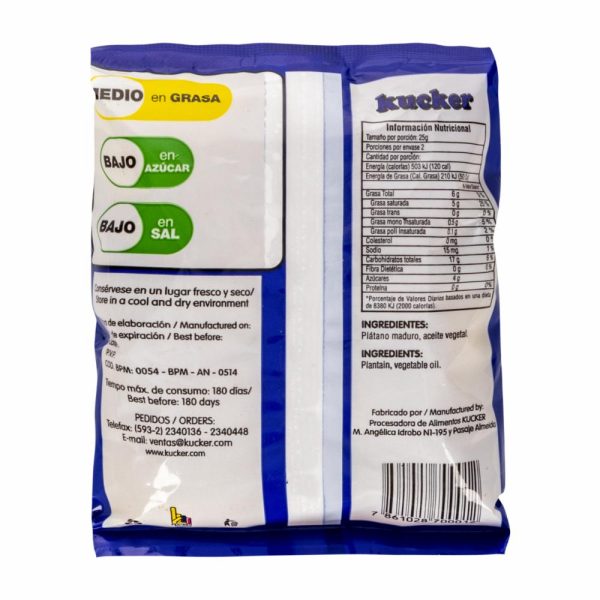 - Elaborado con plátano maduro y aceite vegetal