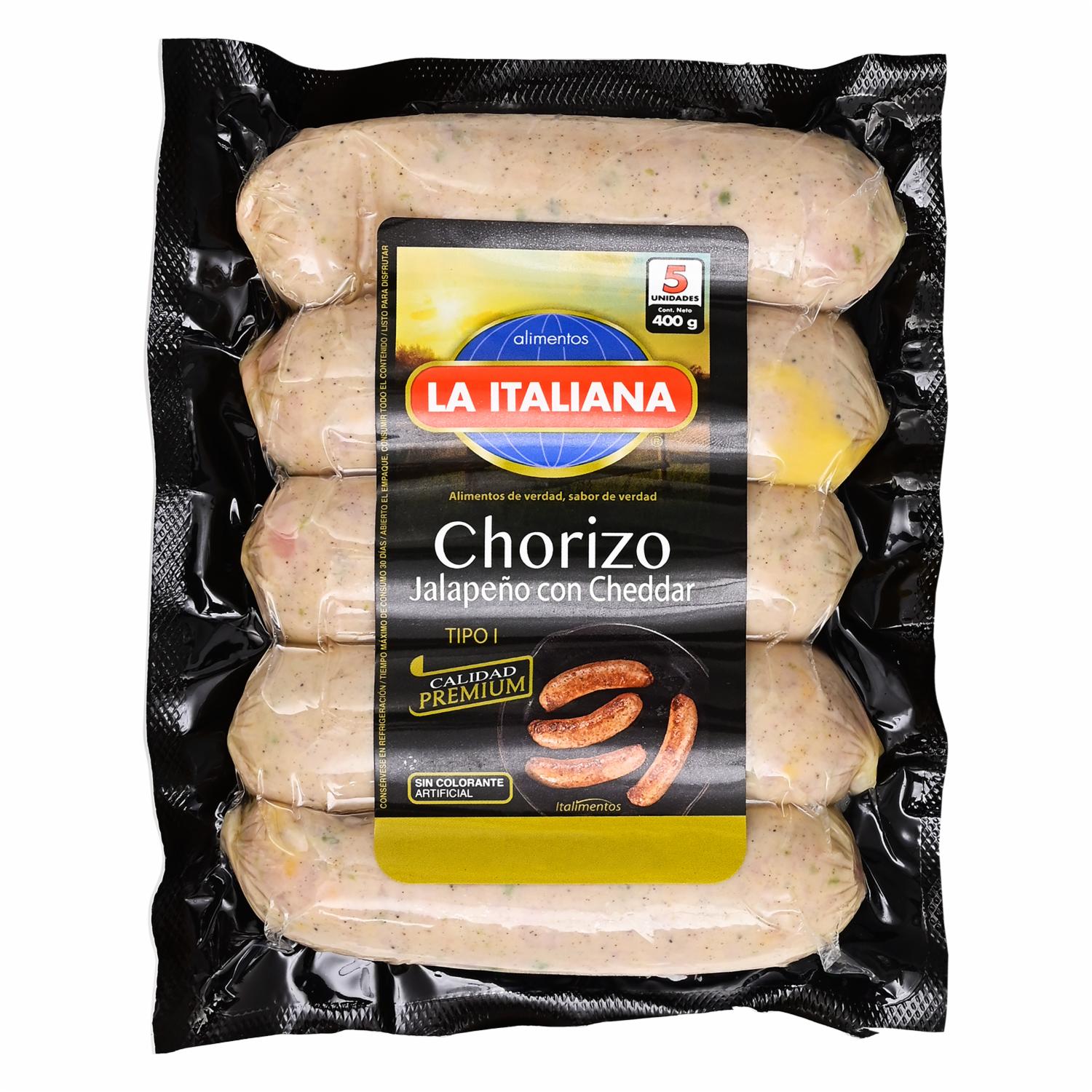 Chorizo Jalapeño Y Cheddar LA ITALIANA 400 G – LA ITALIANA. Disponible en nuestros locales. Precio y stock pueden variar según la tienda.