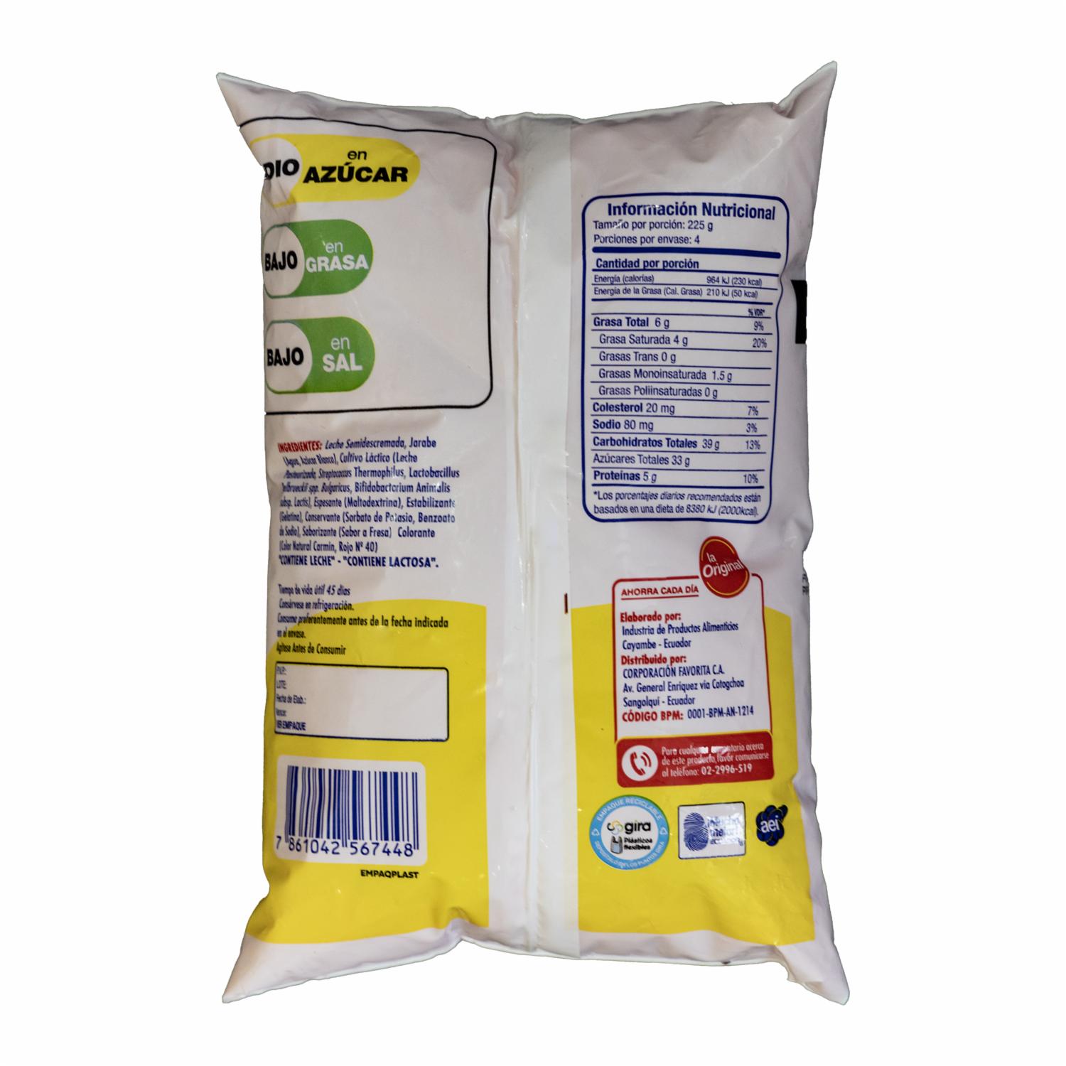 Bebida De Yogurt Sabor A Fresa En Funda LA ORIGINAL 900 G