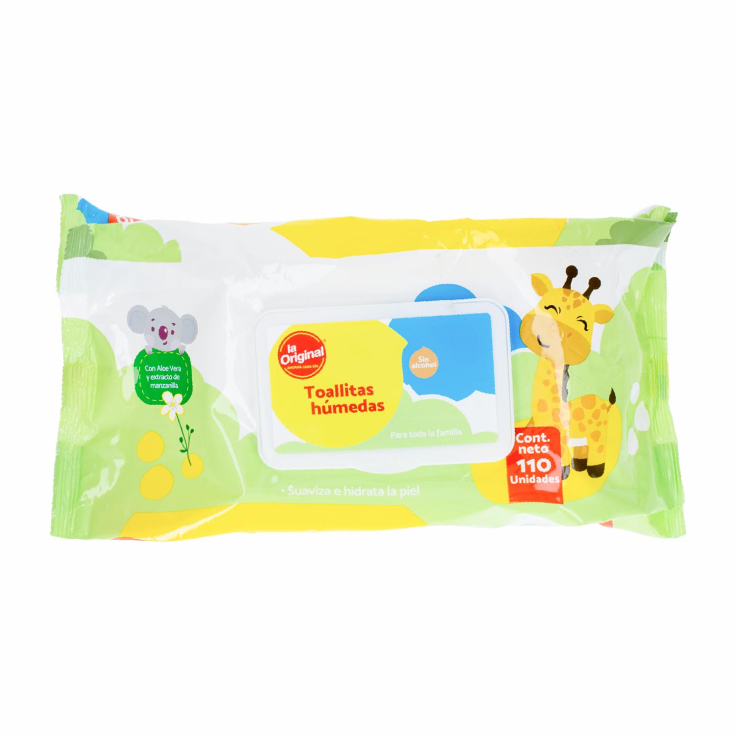 - Toallitas húmedas sin alcohol para toda la familia. Suaviza e hidrata la piel