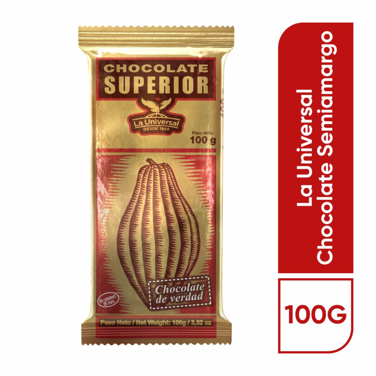 Chocolate Semiamargo SUPERIOR 100 G – SUPERIOR. Disponible en nuestros locales. Precio y stock pueden variar según la tienda.