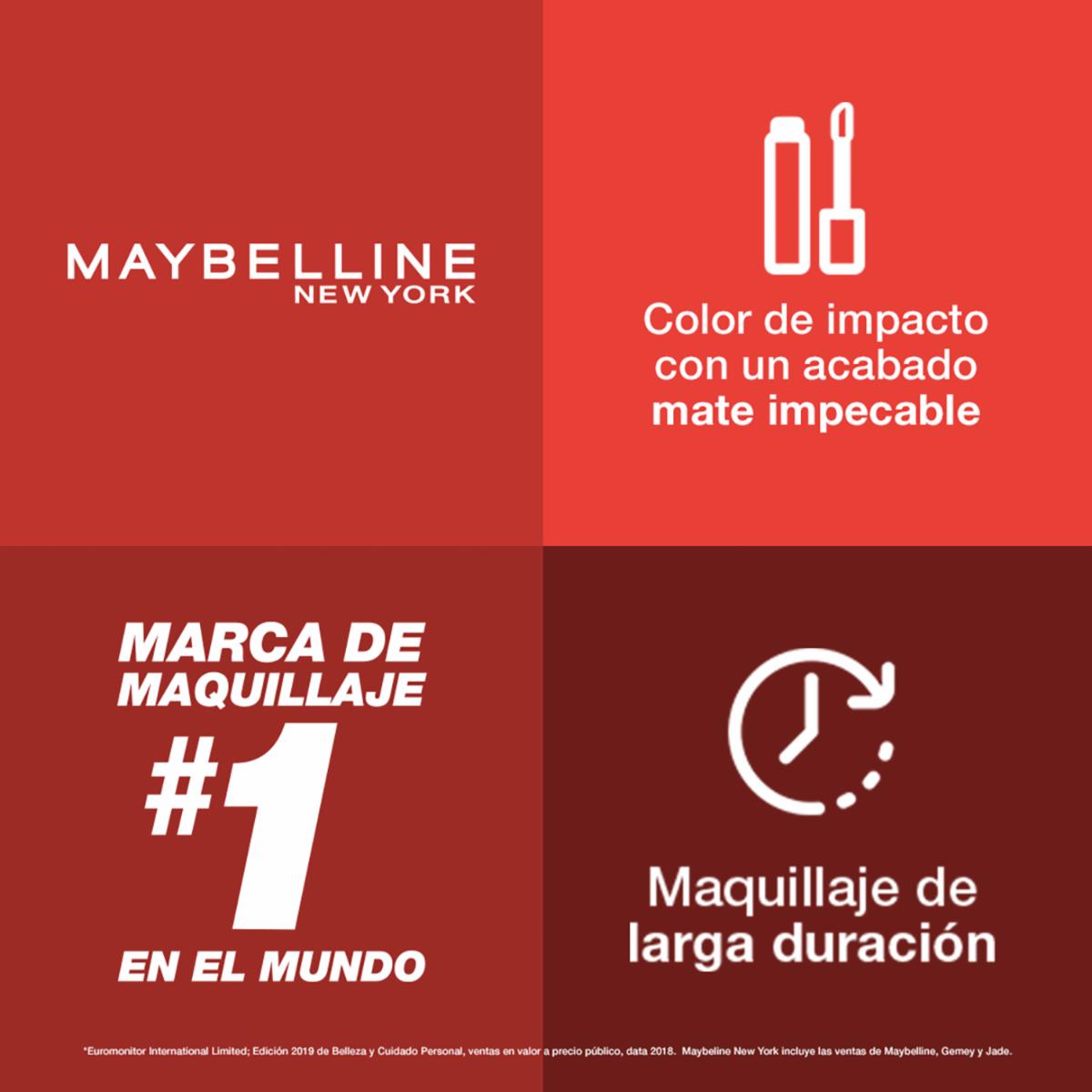 - Luce espectacular con el Labial líquido de larga duración Super Stay matte ink liquido de Maybelline New York. Su acabado mate te durará hasta por 16 horas.