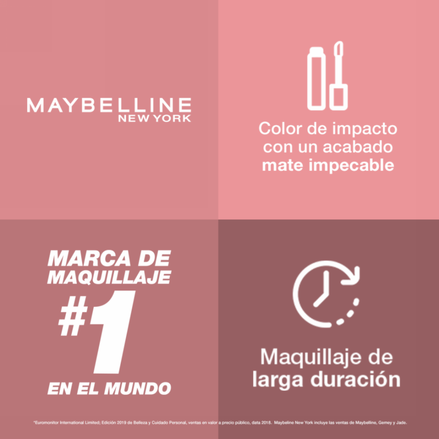 - Luce espectacular con el Labial líquido de larga duración Super Stay matte ink liquido de Maybelline New York. Su acabado mate te durará hasta por 16 horas.