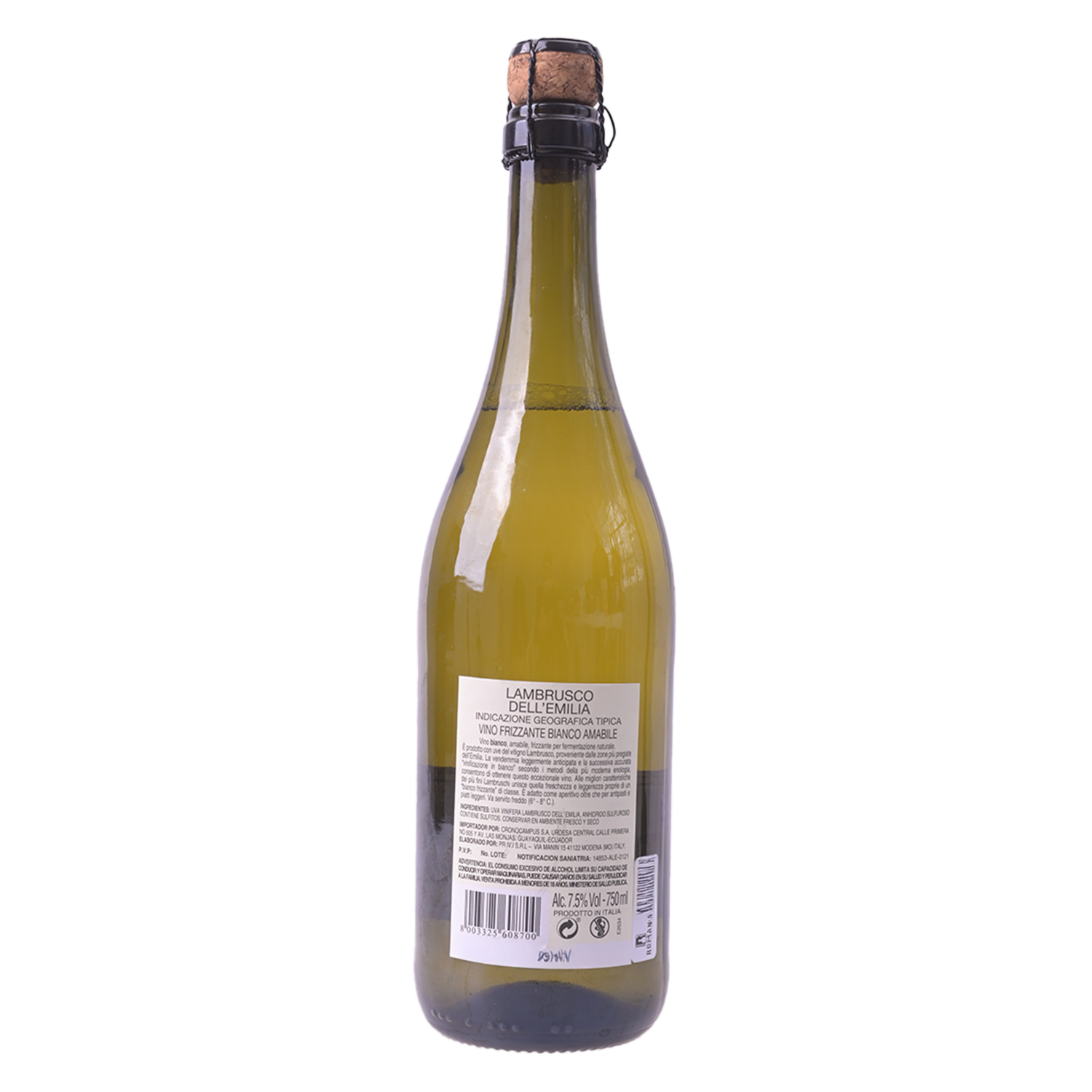 - Delicioso Vino Espumante, Este Lambrusco Blanco Es Un Vino Con Unas Maravillosas Y Finas Burbujas, Cuyo Sabor Suavemente Dulce, Afrutado, Alegre Y Armonioso, Lo Hace Perfecto Para Acompañar Quesos, Pastas Y En General Todo Tipo De Comida. Grado Alcohólico 7, 5%