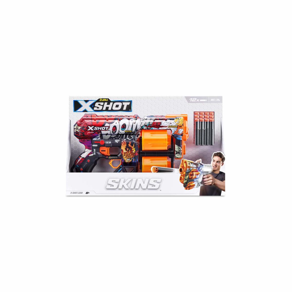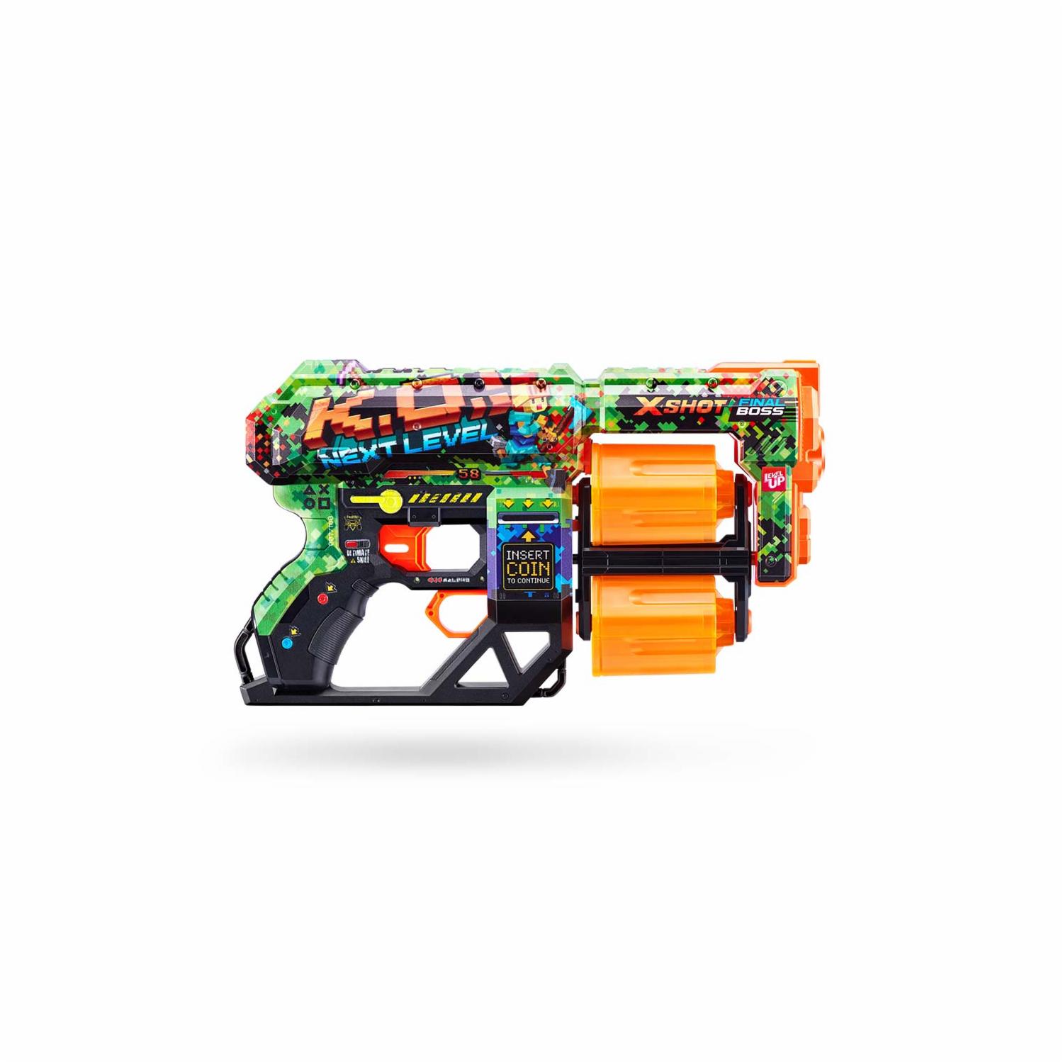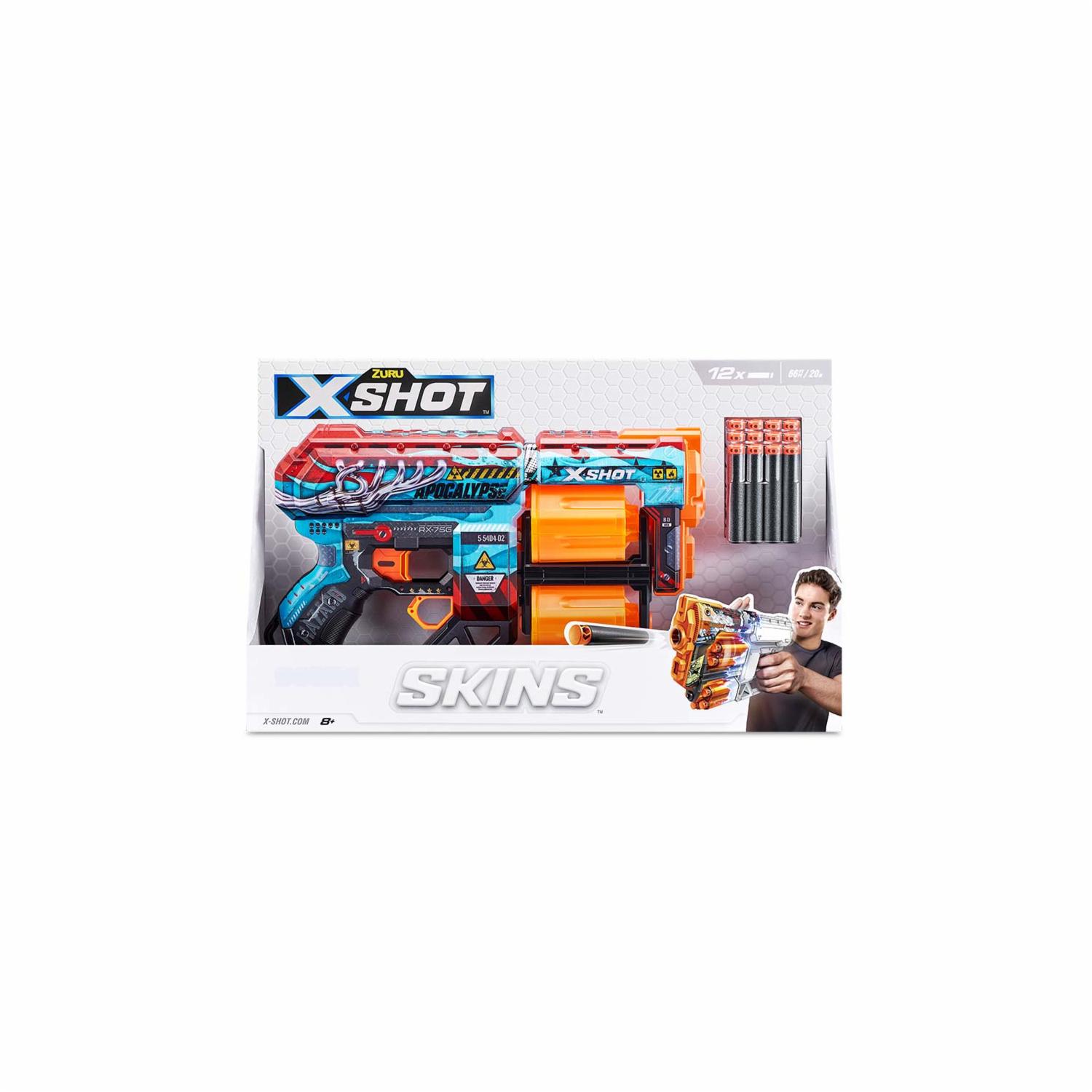 - Usando tecnología de impresión de última generación, X-Shot Skins Dread, con 12 Dardos es un blaster diseñado a medida que trae la experiencia del juego de desollar tu blaster al campo de batalla. La diversión nunca se detiene con una capacidad de 12 dardos con dos cilindros giratorios. Cuando te quedes sin dardos en un barril, ¡simplemente cambia al segundo para acabar con la competencia!