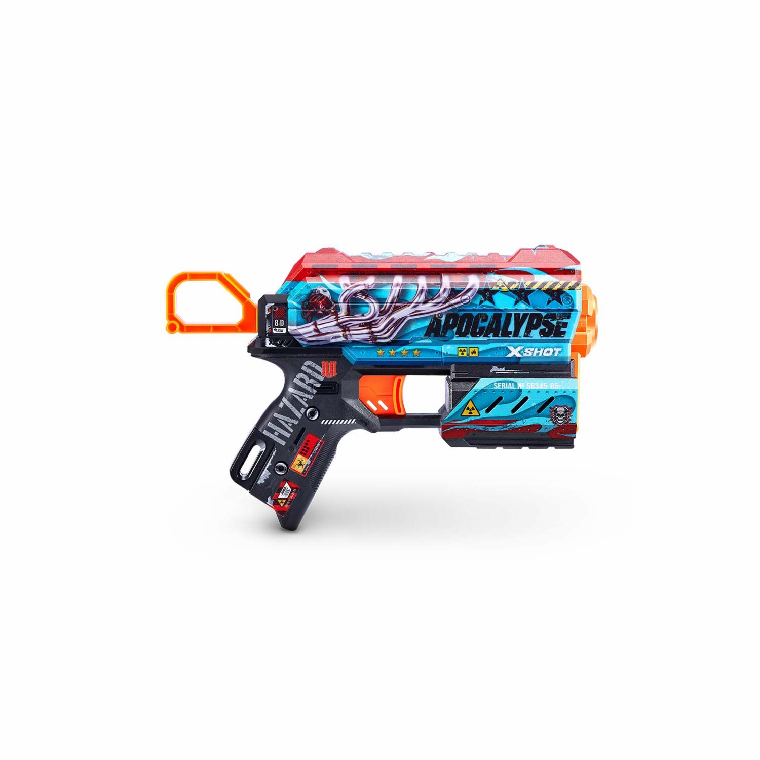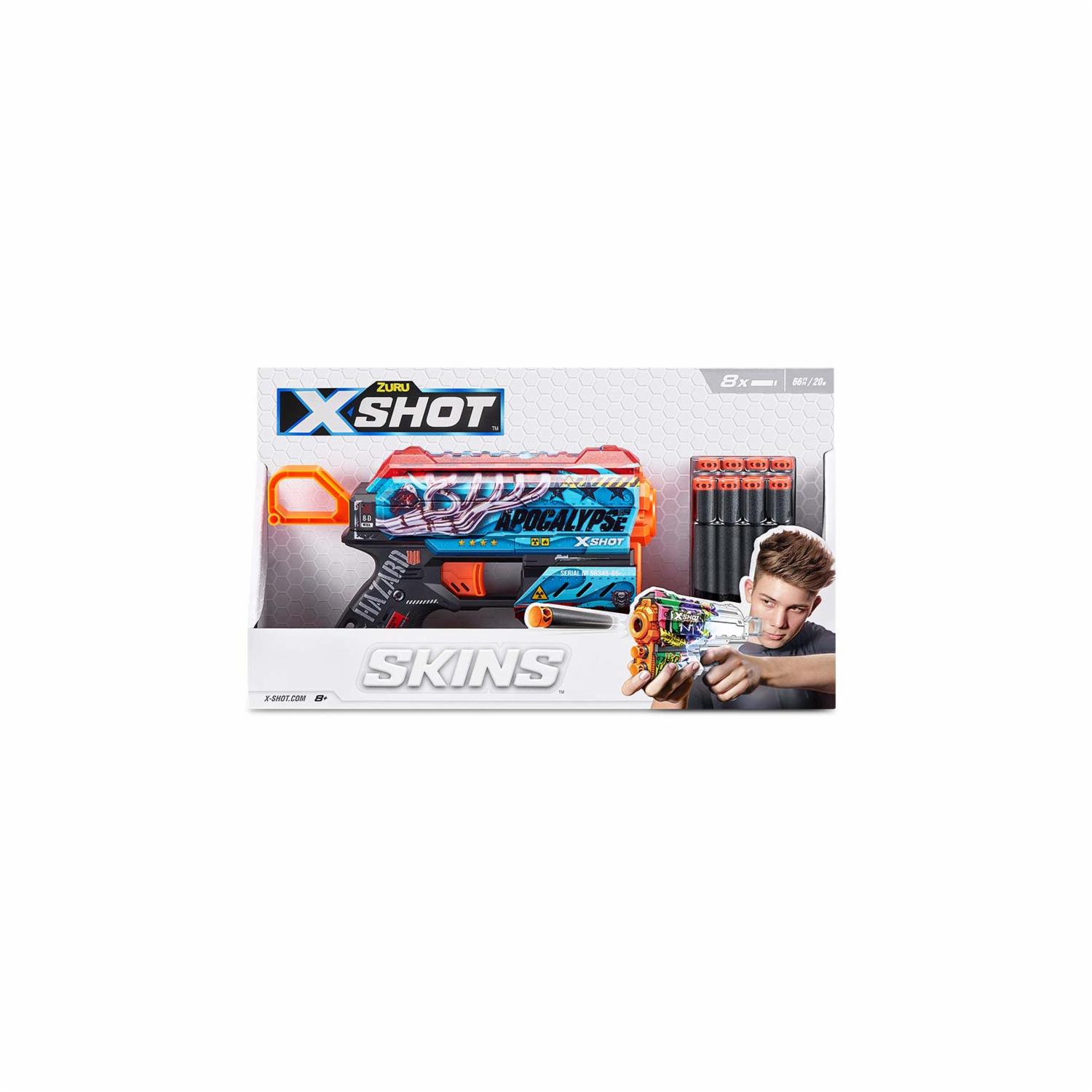 - ¡Elige tu Skin con el X-Shot Skins Flux Game Over Dart Blaster con 8 dardos! ¡Usando tecnología de impresión de última generación, X-Shot Skins es el primer blaster diseñado a medida que trae la experiencia del juego de desollar tu blaster al campo de batalla!