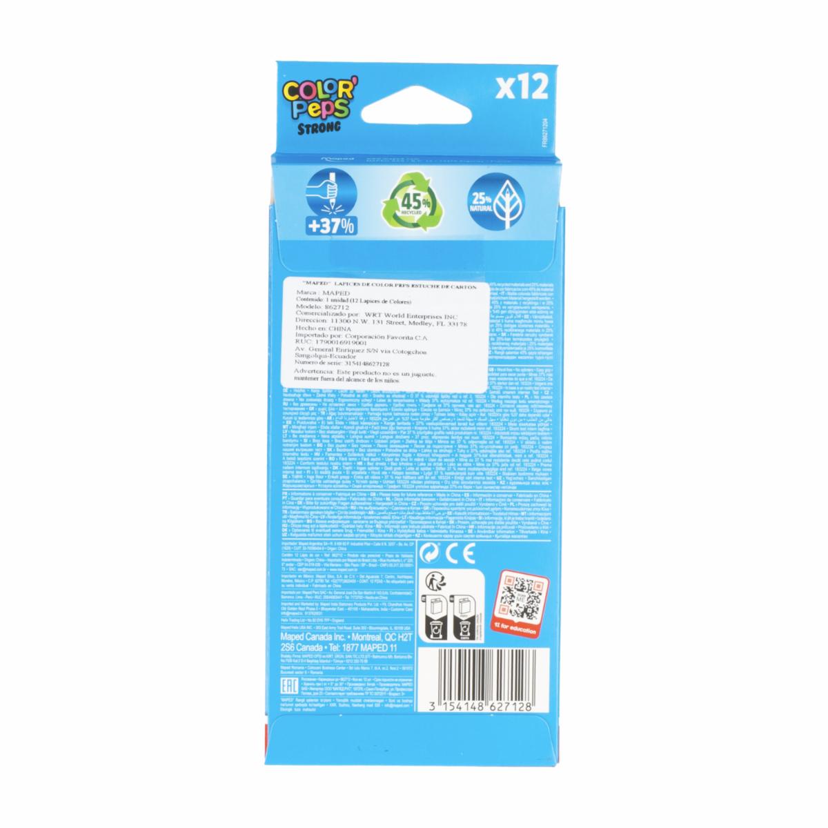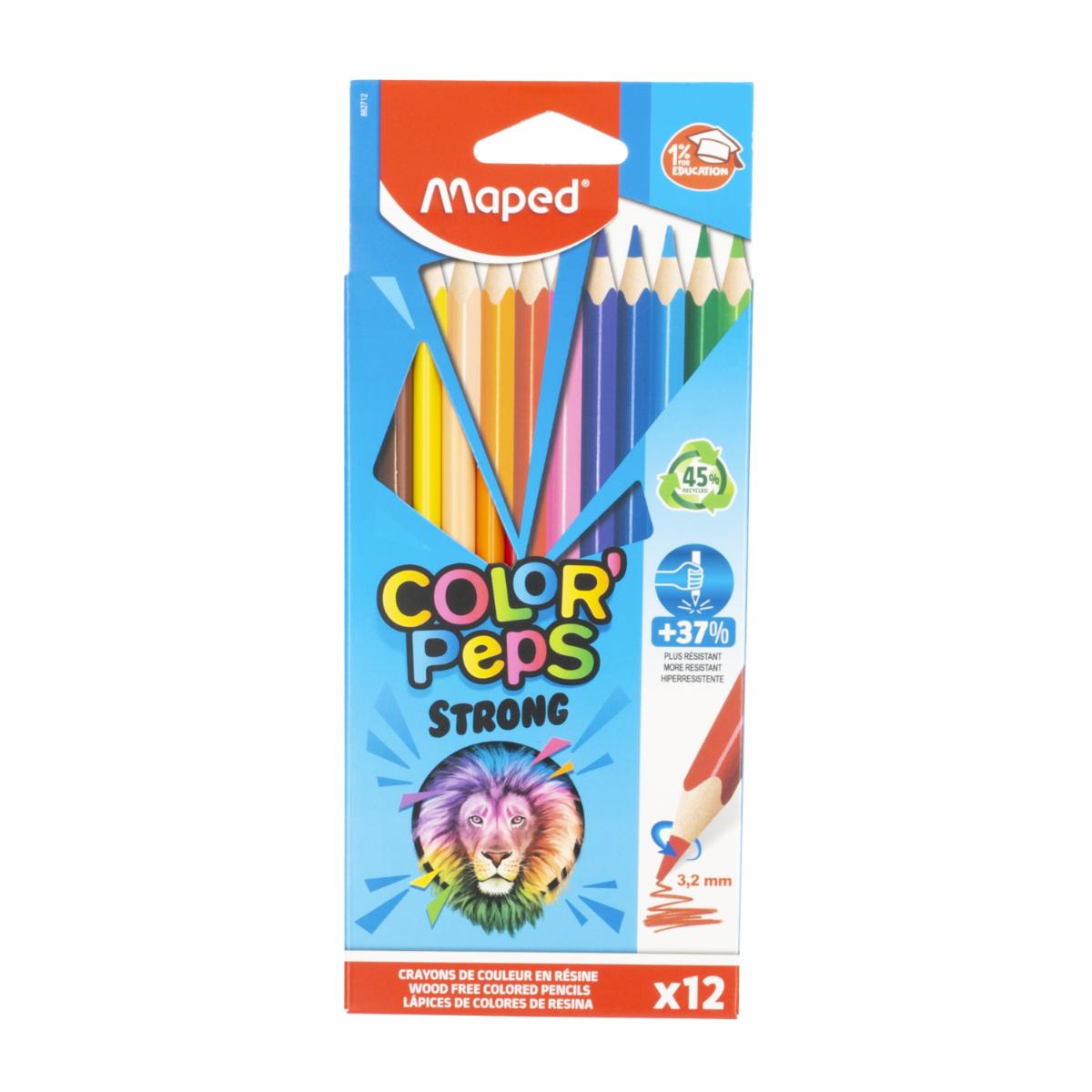 - ¡Potencia tu creatividad con los Lápices Maped Color Peps Strong! Equipados con minas super resistentes, estos lápices son perfectos para acompañarte en tus aventuras artísticas más audacesCon una paleta de 12 vibrantes colores, tus creaciones brillarán con intensidad