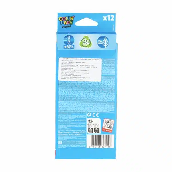 ¡Potencia tu creatividad con los Lápices Maped Color Peps Strong! Equipados con minas super resistentes, estos lápices son perfectos para acompañarte en tus aventuras artísticas más audacesCon una paleta de 12 vibrantes colores, tus creaciones brillarán con intensidad