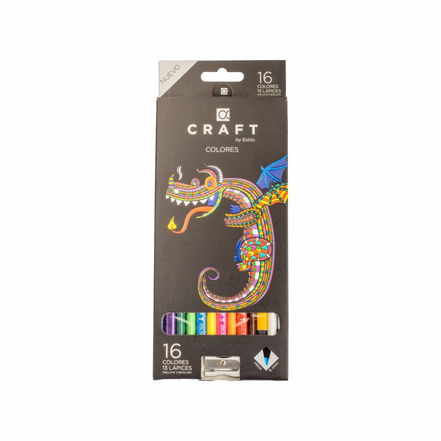 Lápices De Colores Craft 10Nr Largos Triangular ESTILO 16 Colores