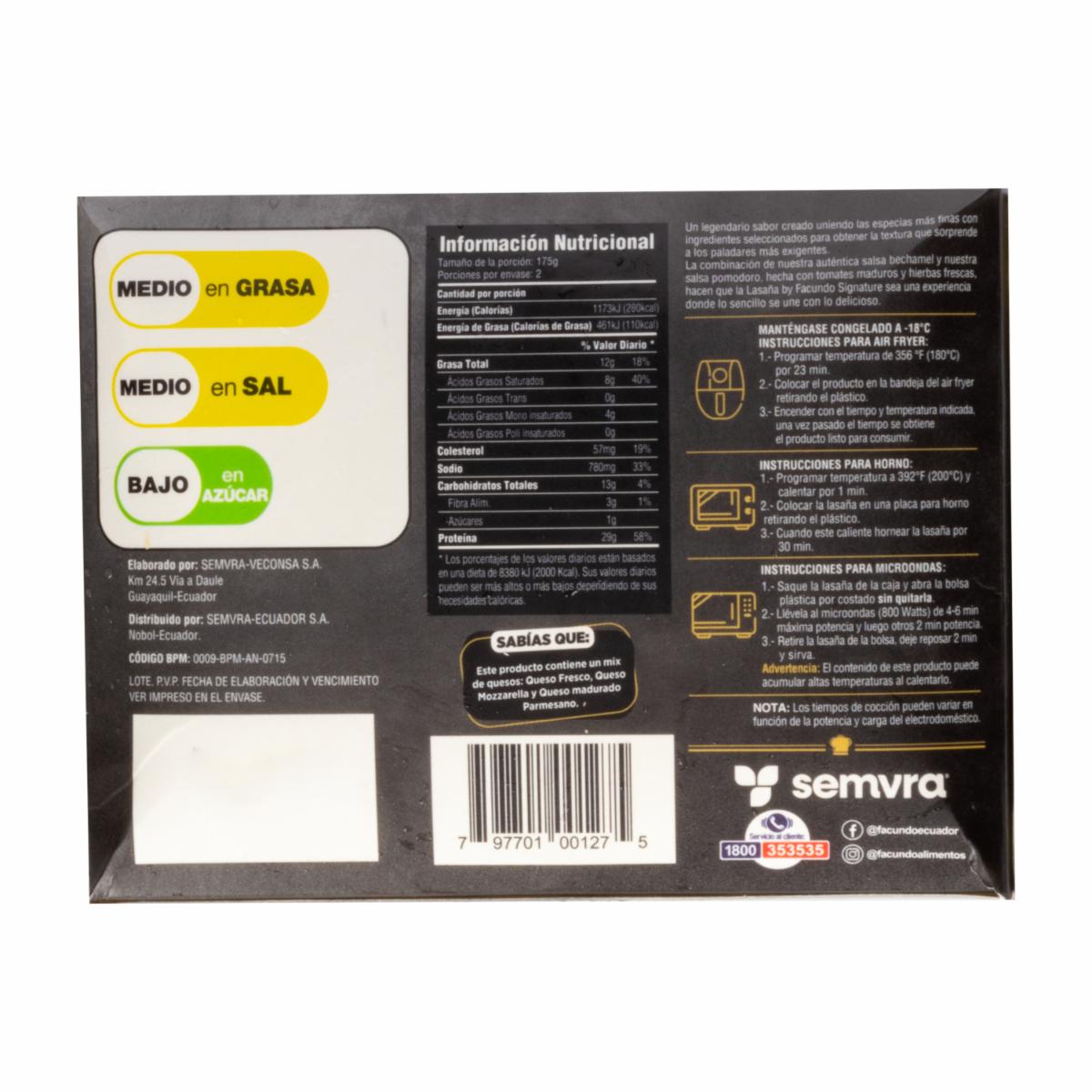 Lasagna Congelada FACUNDO 350 G – FACUNDO. Disponible en nuestros locales. Precio y stock pueden variar según la tienda.