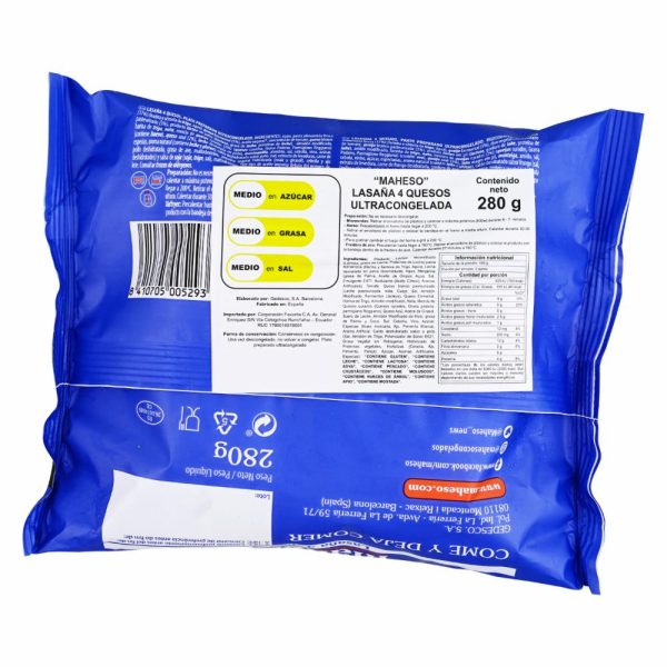 Lasaña de suave textura e intenso sabor solo debe calentar y servir contiene gluten, leche y huevo