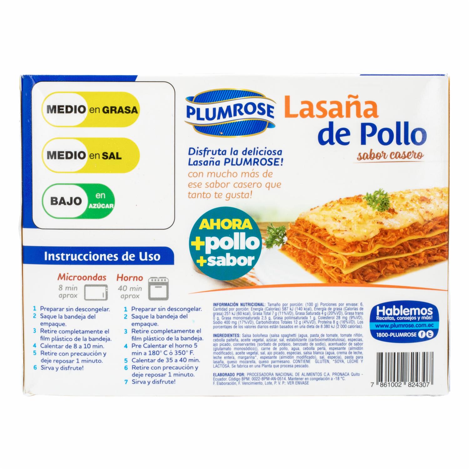 Lasaña de Pollo con sabor casero, práctica y fácil de preparar ya que viene lista para calentar y servir. Excelente alternativa para una comida diaria y el tamaño justo como para compartirla en familia o degustarla individualmente. Lista en 8 minutos en microondas