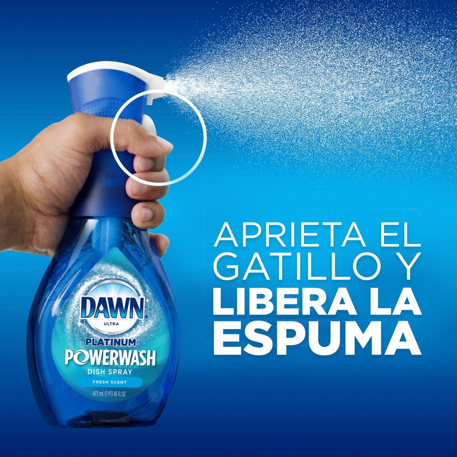 - ¡Conoce la nueva forma de lavar tus platos! El spray lavatrastes Dawn Powerwash Platinum es la forma más rápida y fácil de lavar los trastes mientras cocinas. La espuma activada por pulverización spray corta la grasa en contacto, sin agua, para una limpieza 5X más rápida (vs. Dawn no concentrado)