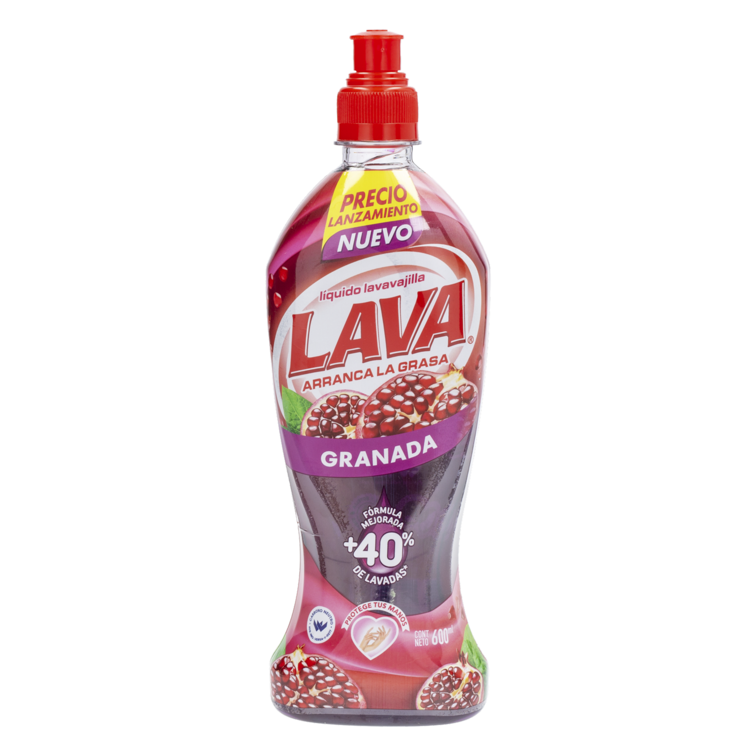 - El líquido lavavajilla Lava aroma granada ofrece una limpieza potente que arranca la grasa desde el primer lavado, dejando tu vajilla impecable y con un aroma vibrante y duradero. Su fórmula mejorada rinde hasta un 40 % más de lavadas, cuida tus manos durante el uso diario y brinda un equilibrio ideal entre eficacia, rendimiento y frescura en cada gota