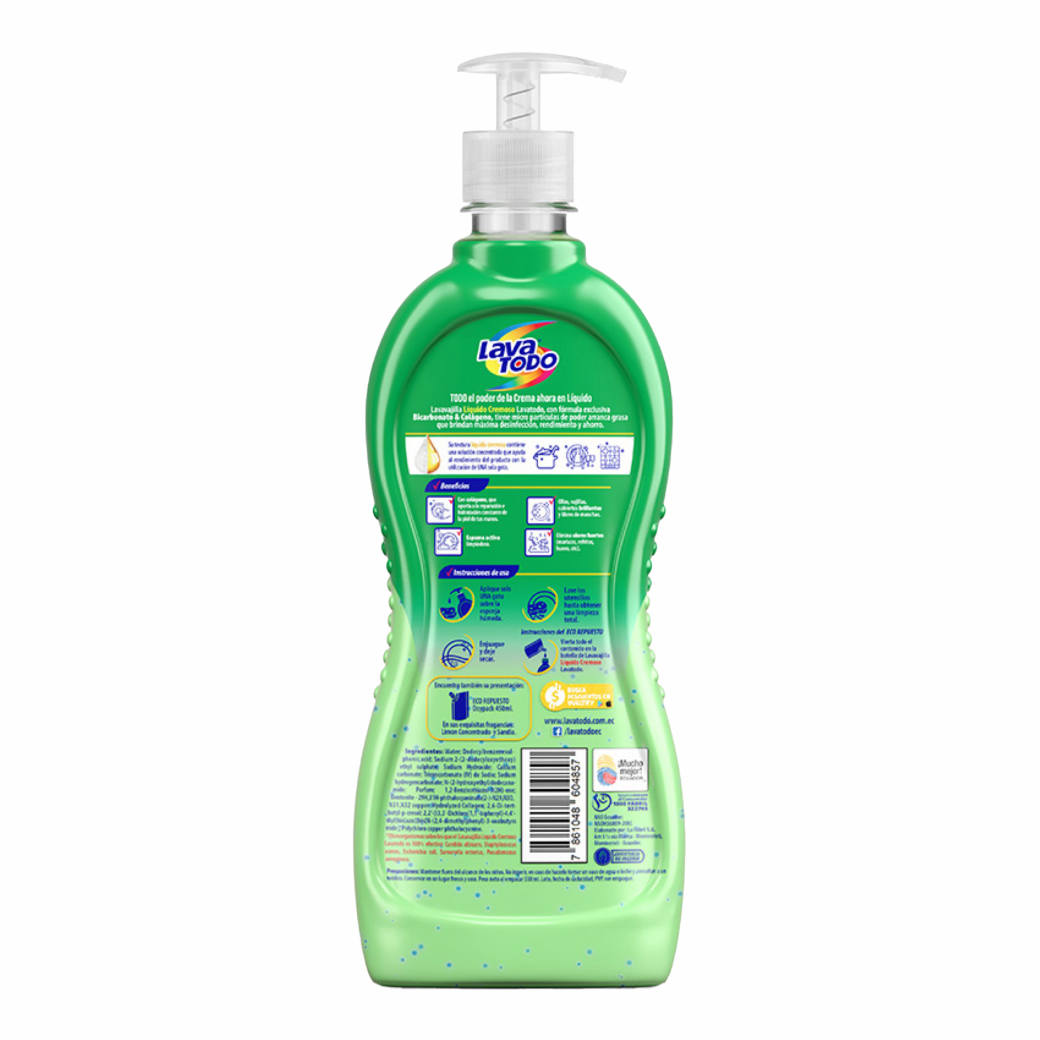 El lavavajillas en líquido Lavatodo es tu aliado ideal para una limpieza eficaz y rápida de tus utensilios. Su fórmula concentrada elimina grasa y restos de alimentos con facilidad, dejando tus platos y ollas impecables. Su aroma fresco proporciona una experiencia agradable mientras lavas