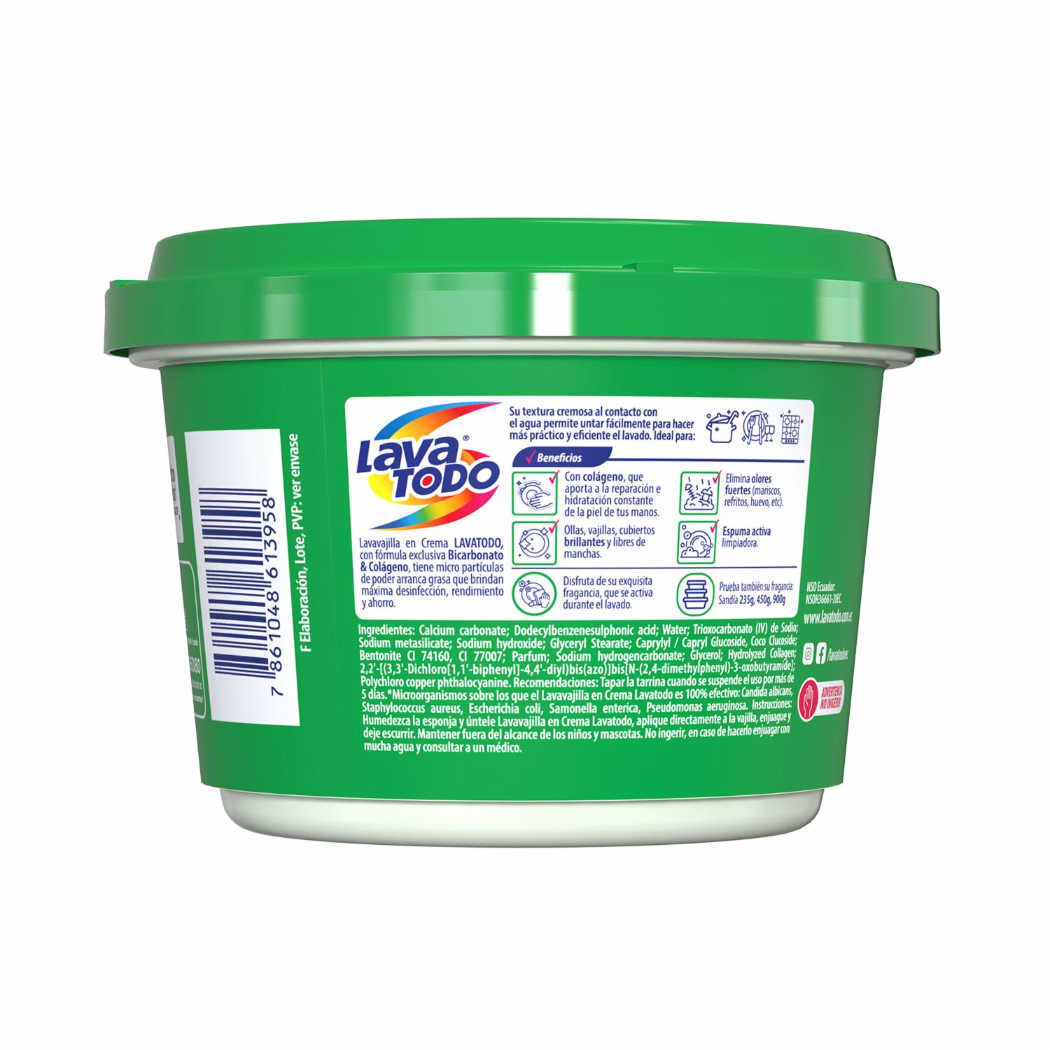 Lavavajillas Crema Con Bicarbonato Y Colágeno Limón Concentrado LAVATODO 900 G