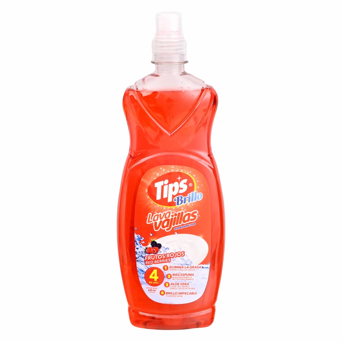 Lavavajillas Líquido Brillo Fragancia Futos Rojos 4 En 1 TIP’S 650 Ml