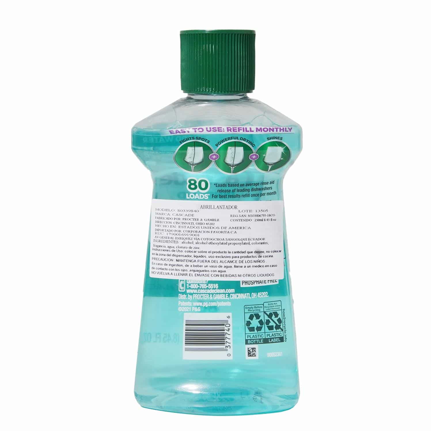 Lavavajillas Rinse Aid Platinum CASCADE 250 Ml