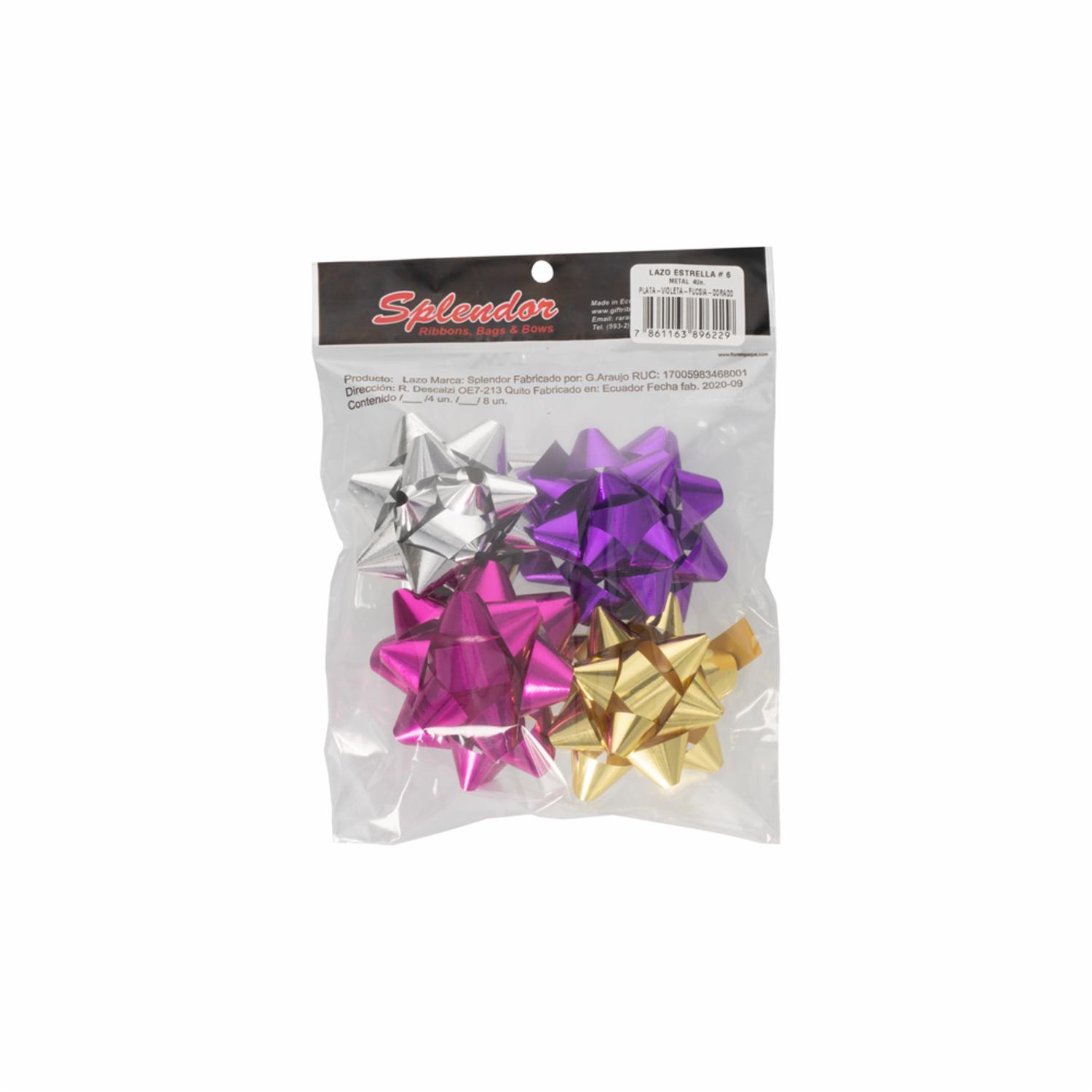 consultando preciosLazo Estrella No. 6 Metal. P-Vio-F-D SPLENDOR X 4 Uds – SPLENDOR. Disponible en nuestros locales. Precio y stock pueden variar según la tienda.