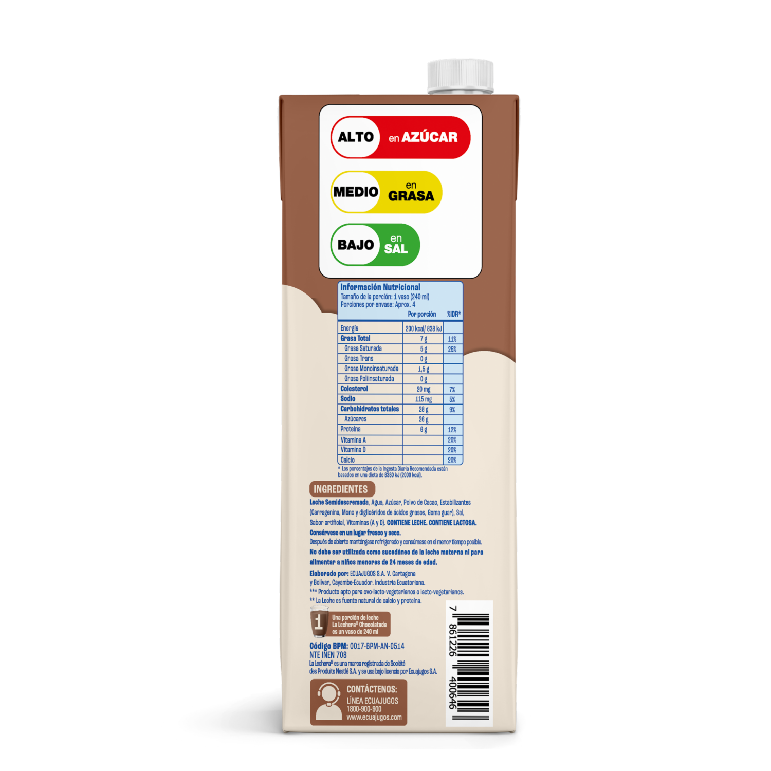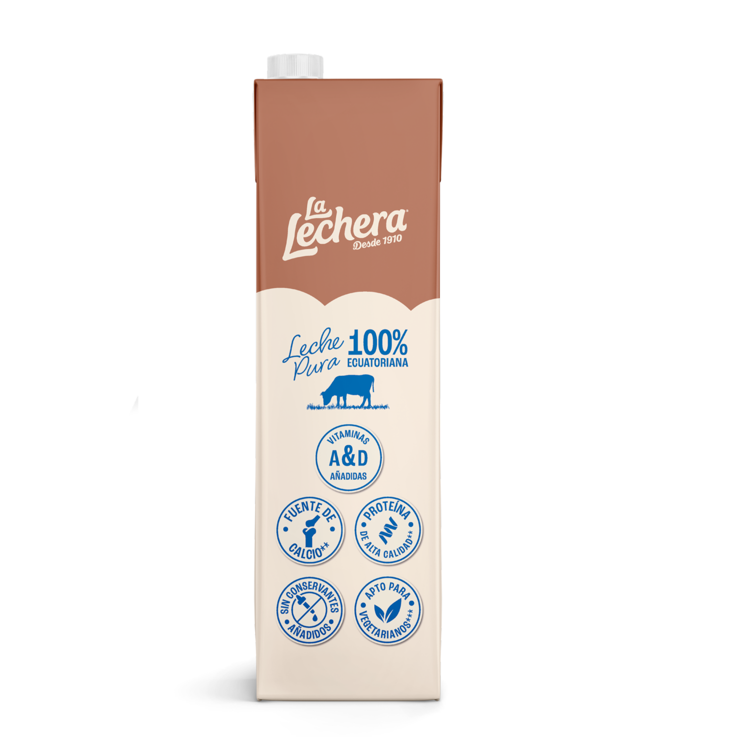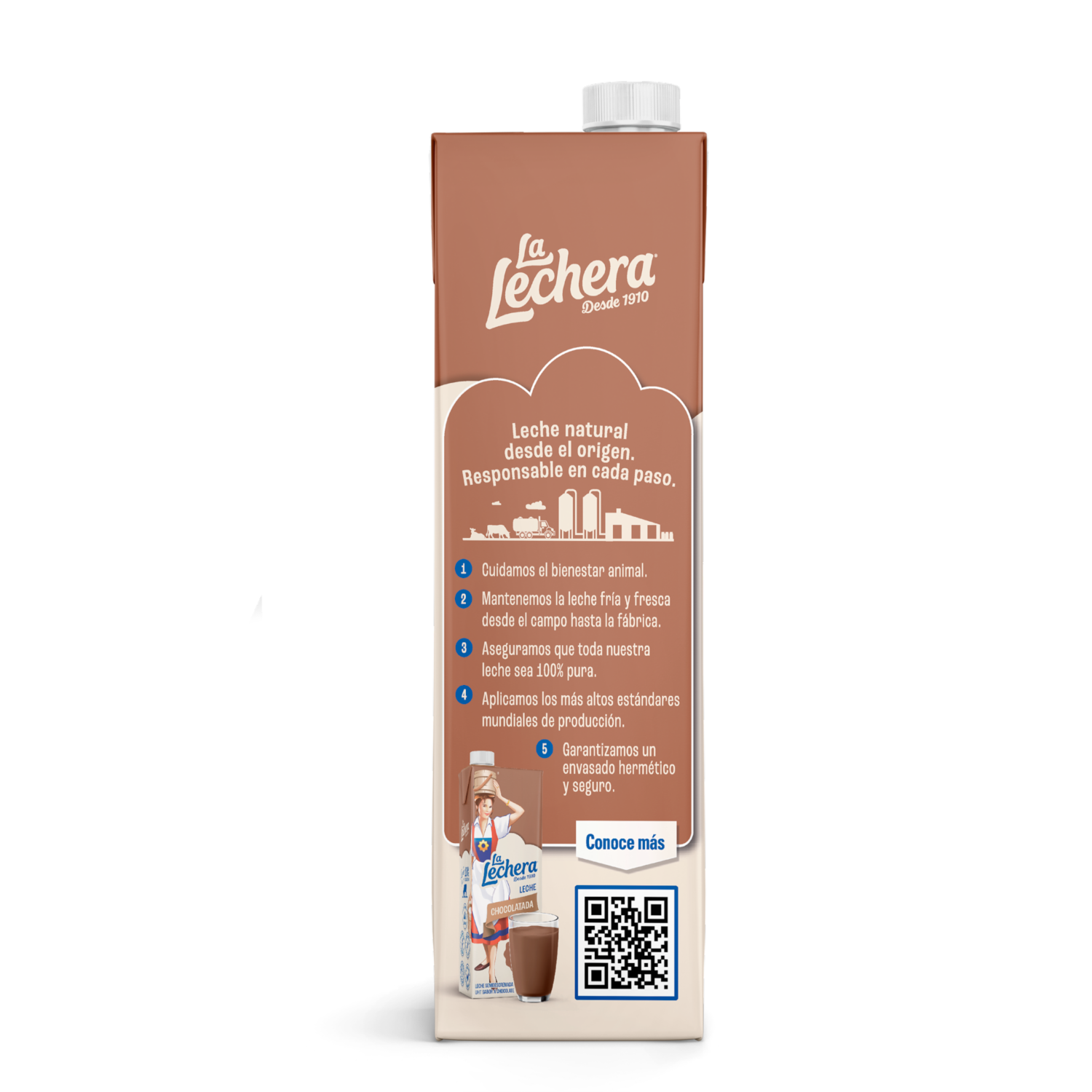 La Lechera, leche saborizada de chocolate larga vida UHT, con vitaminas A y D, ideal para acompañar tus momentos de cada día Leche Pura 100% Ecuatoriana