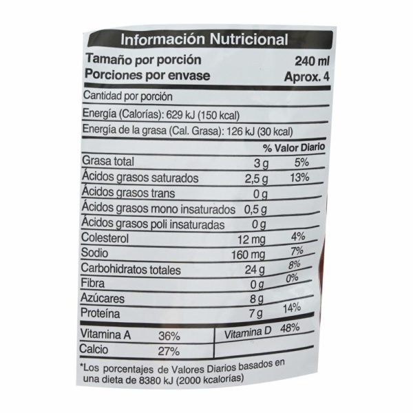 Leche chocolatada semidescremada chocolatada UHT, 50% libre de grasa, con vitaminas A, D3 y calcio