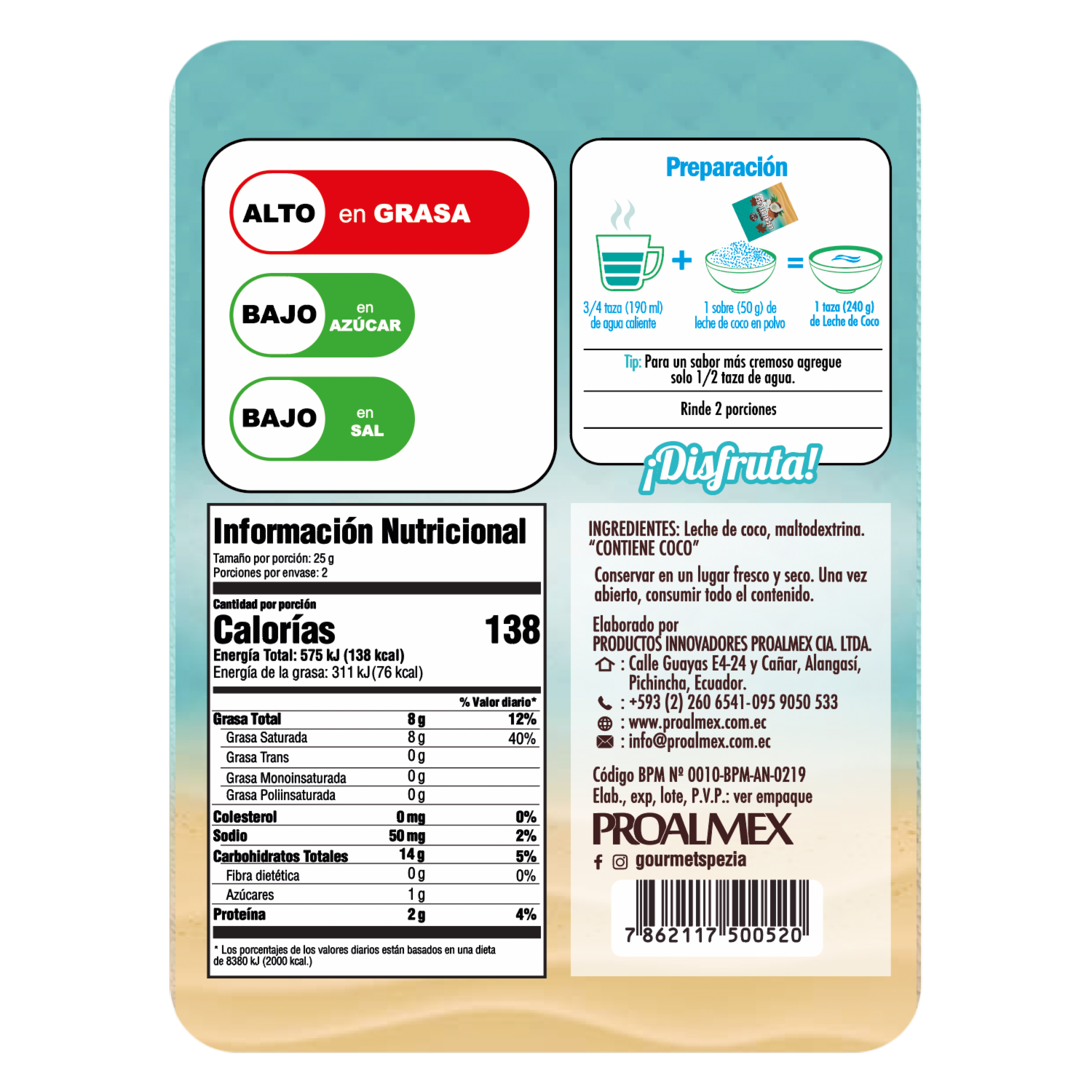 Leche De Coco En Polvo PROALMEX 50 G