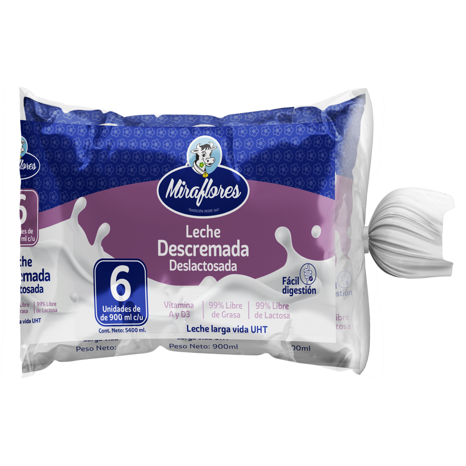 - Suave, ligera y fácil de digerir, la Leche Descremada Deslactosada MIRAFLORES es ideal para quienes cuidan su alimentación sin renunciar al sabor. Con menos grasa y sin lactosa, brinda la nutrición que necesitas cada día, perfecta para disfrutar sola, con cereal o en tus preparaciones favoritas
