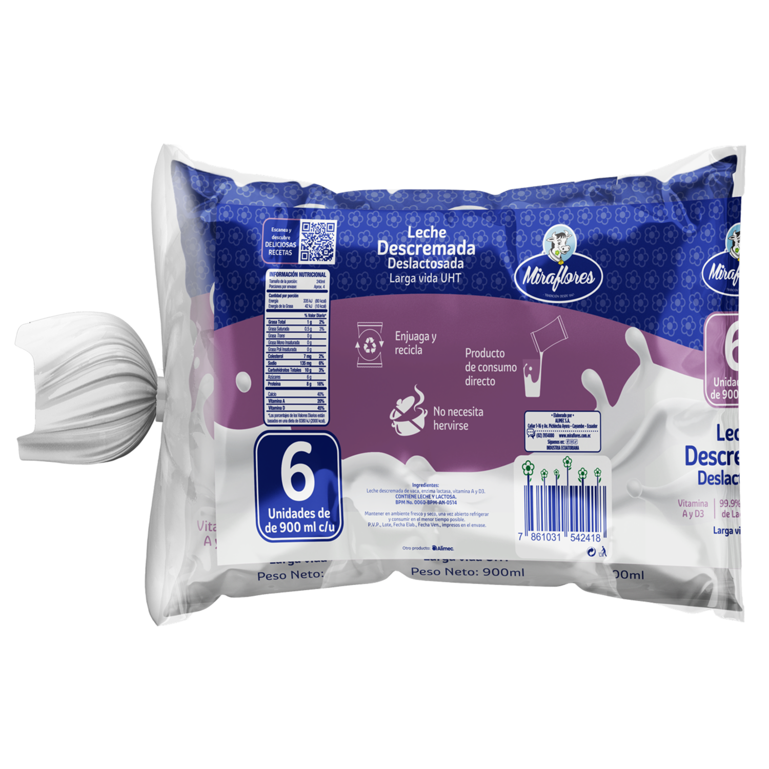 Leche Descremada Deslactosada MIRAFLORES 6 X 900 Ml