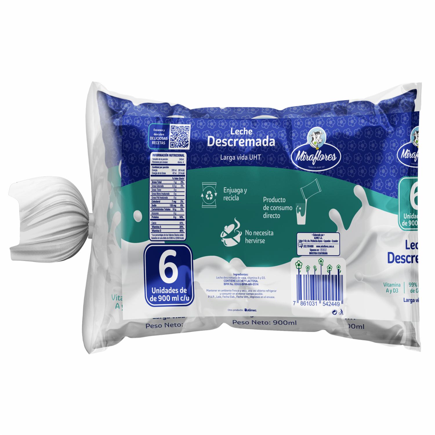 Leche Descremada Larga Vida MIRAFLORES 6 X 900 Ml