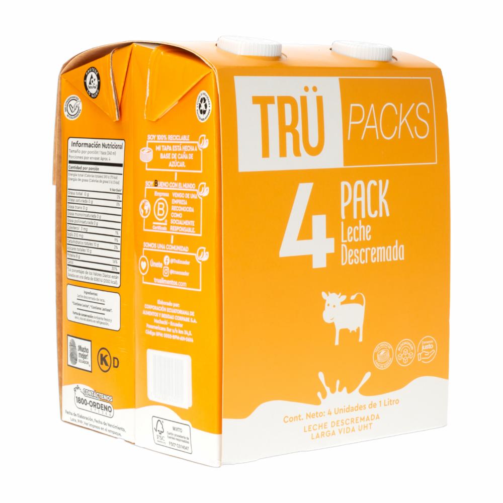 Leche Descremada Larga Vida UHT TRÜ 4 X 1000 Ml – TRU. Disponible en nuestros locales. Precio y stock pueden variar según la tienda.