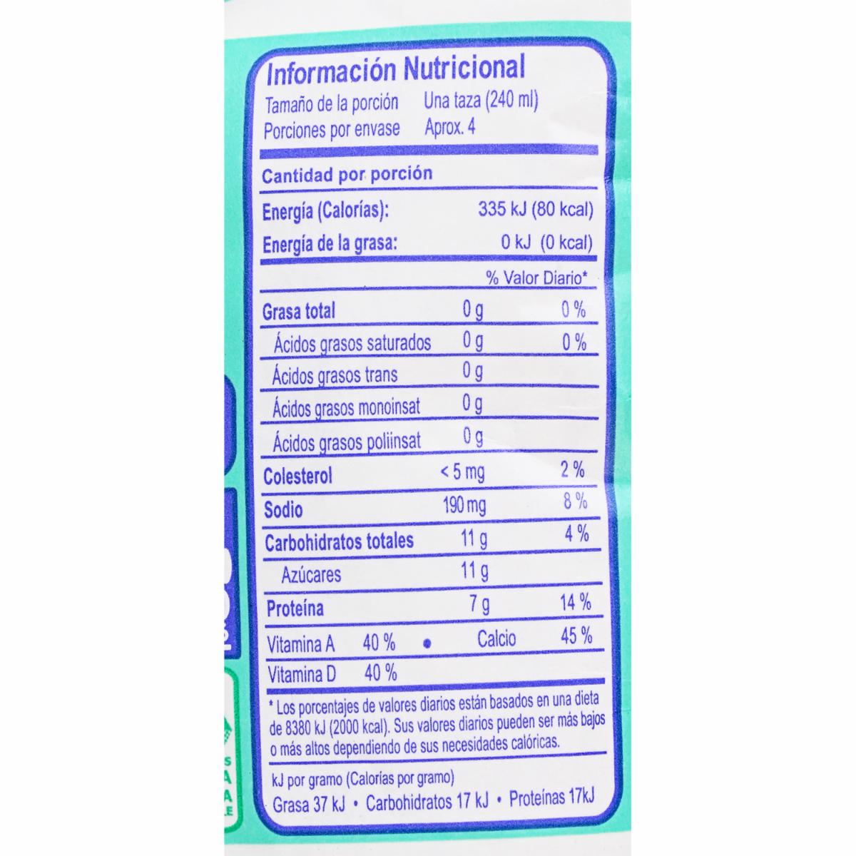 Buena fuente de proteínas y contiene las mismas vitaminas y los mismos minerales que la leche entera, pero no contiene grasa
