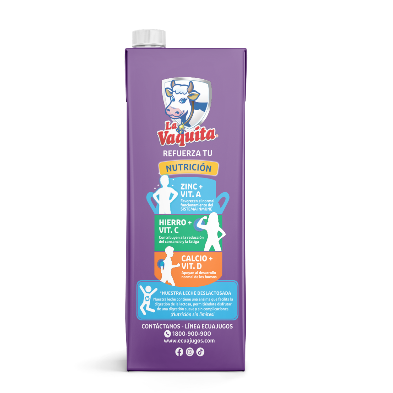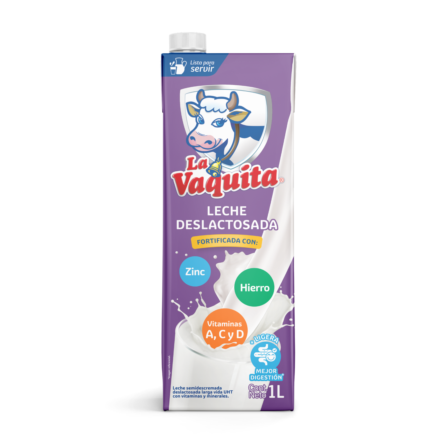 - LA VAQUITA® es una leche Deslactosada con Vitaminas A, C D, Calcio, Hierro y Zinc que fortalece el sistema inmune. Sin conservantes, sin saborizantes. ¡Disfrútala en Familia!