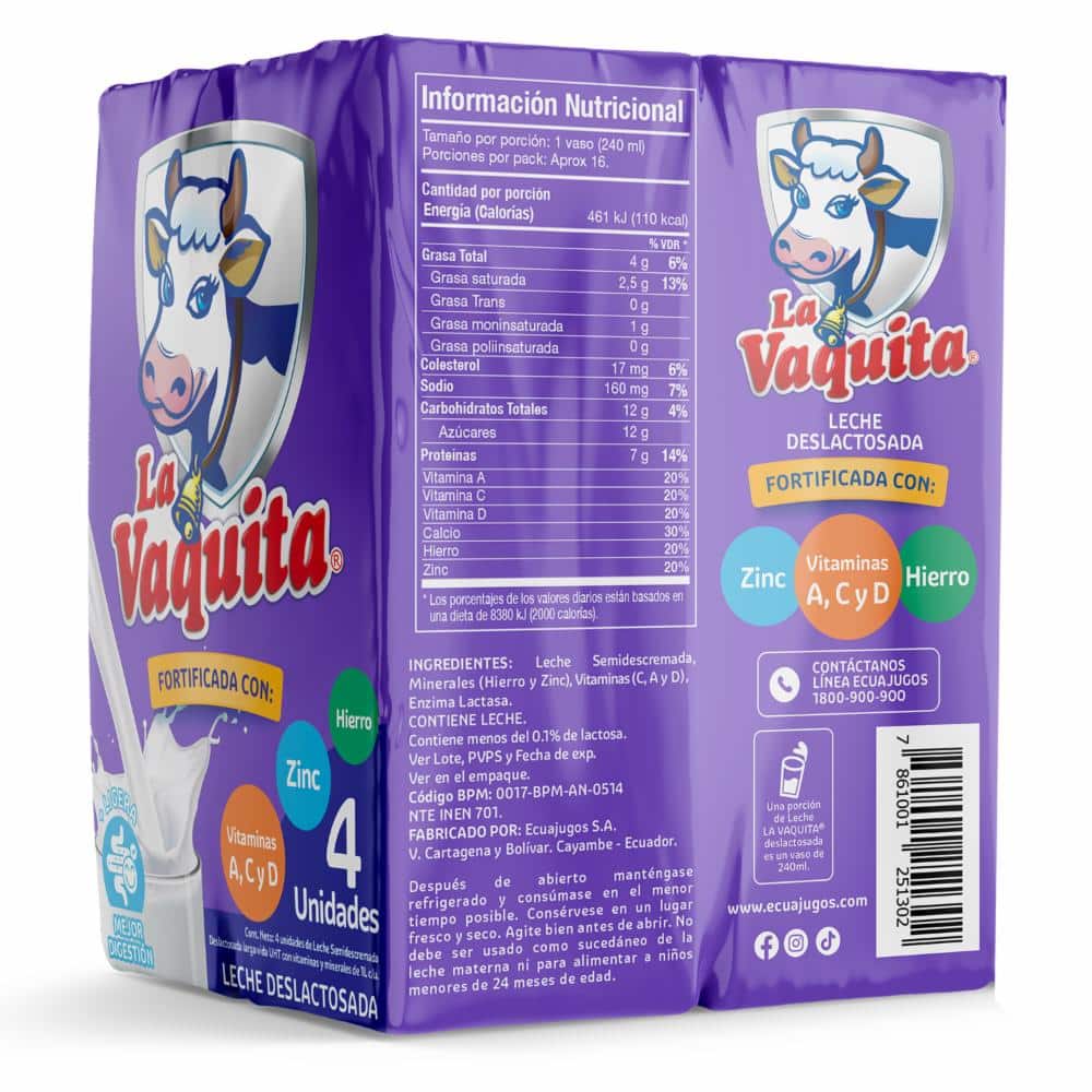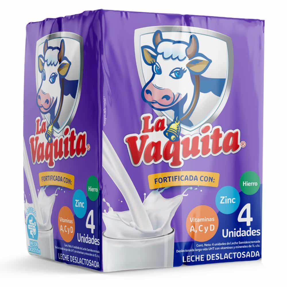 Leche Deslactosada Larga Vida UHT LA VAQUITA 4×1000 Ml