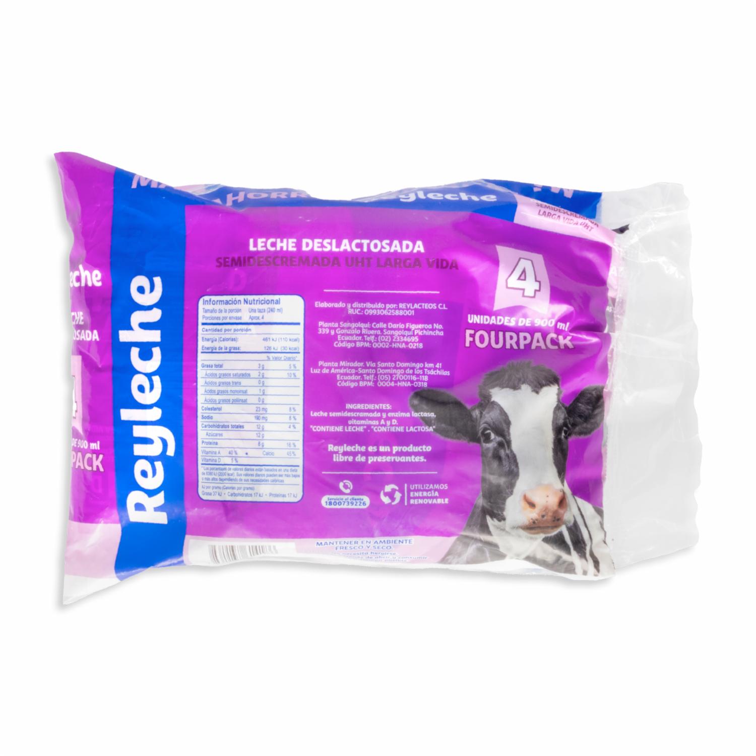 Leche Deslactosada Larga Vida Uht REY LECHE Funda 4 X 900 Ml