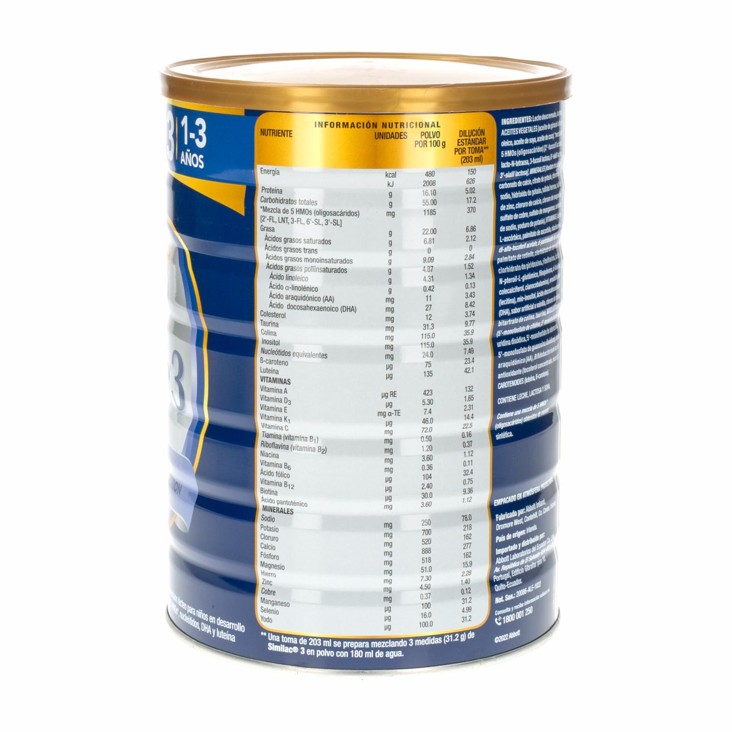 La Leche en Fórmula Infantil Etapa 3 Cinco HMO SIMILAC es una opción nutricional avanzada para bebés desde el primer año hasta los 3 años de edad.Esta fórmula está especialmente diseñada para apoyar el crecimiento y el desarrollo en la etapa de transición, ofreciendo una nutrición completa y equilibrada