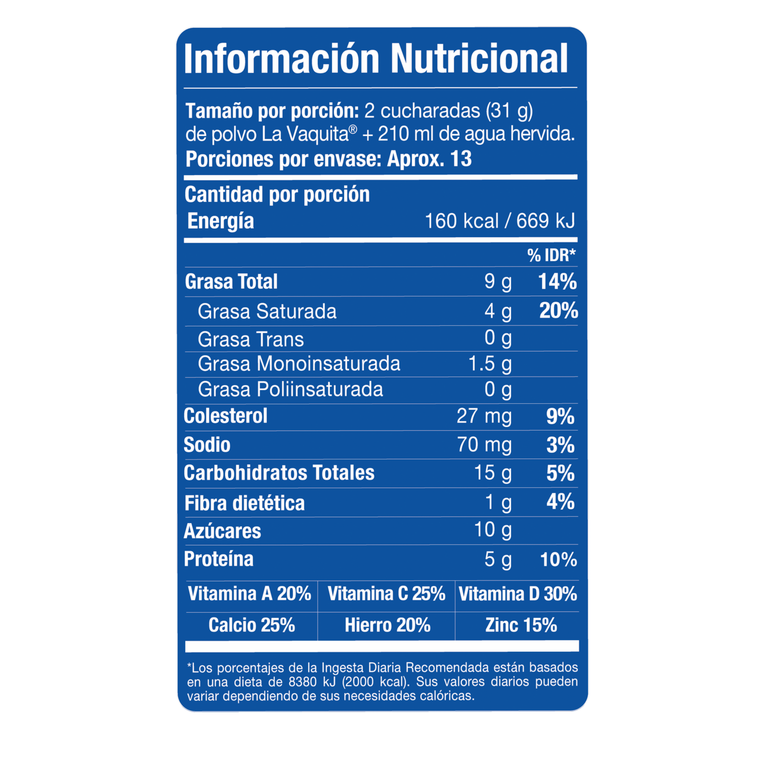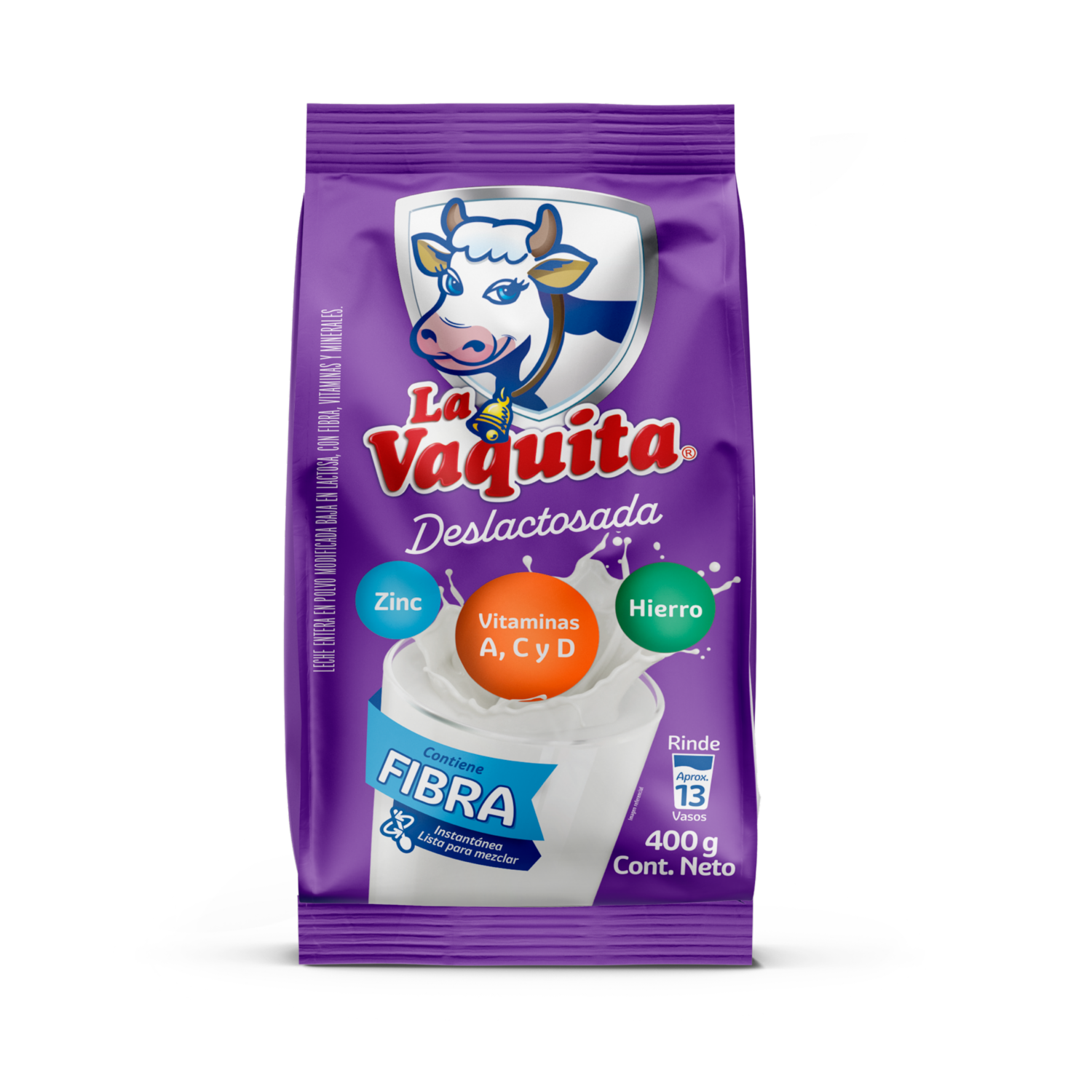 - LA VAQUITA® es una leche deslactosada en polvo con Vitaminas A, C D, Calcio, Hierro y Zinc que fortalece el sistema inmune. Sin conservantes, sin saborizantes. ¡Disfrútala en Familia!