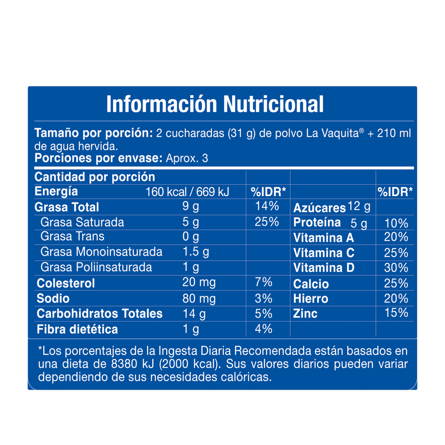 - LA VAQUITA® es una leche entera en polvo con Vitaminas A, C D, Calcio, Hierro y Zinc que fortalece el sistema inmune. Sin conservantes, sin saborizantes. ¡Disfrútala en Familia!