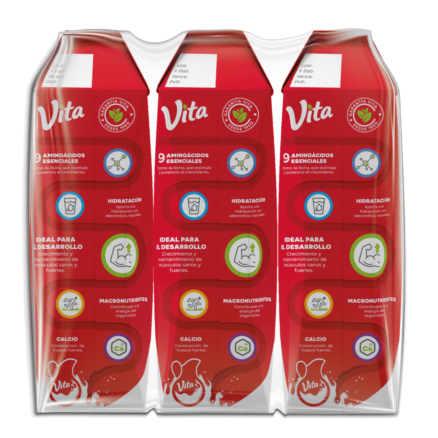 La leche entera Vita, aporta proteína que ayuda a crecer y fortalecer los músculos, huesos y dientes, mientras que en edad adulta al mantenimiento de los mismos y el calcio para el tejido óseo