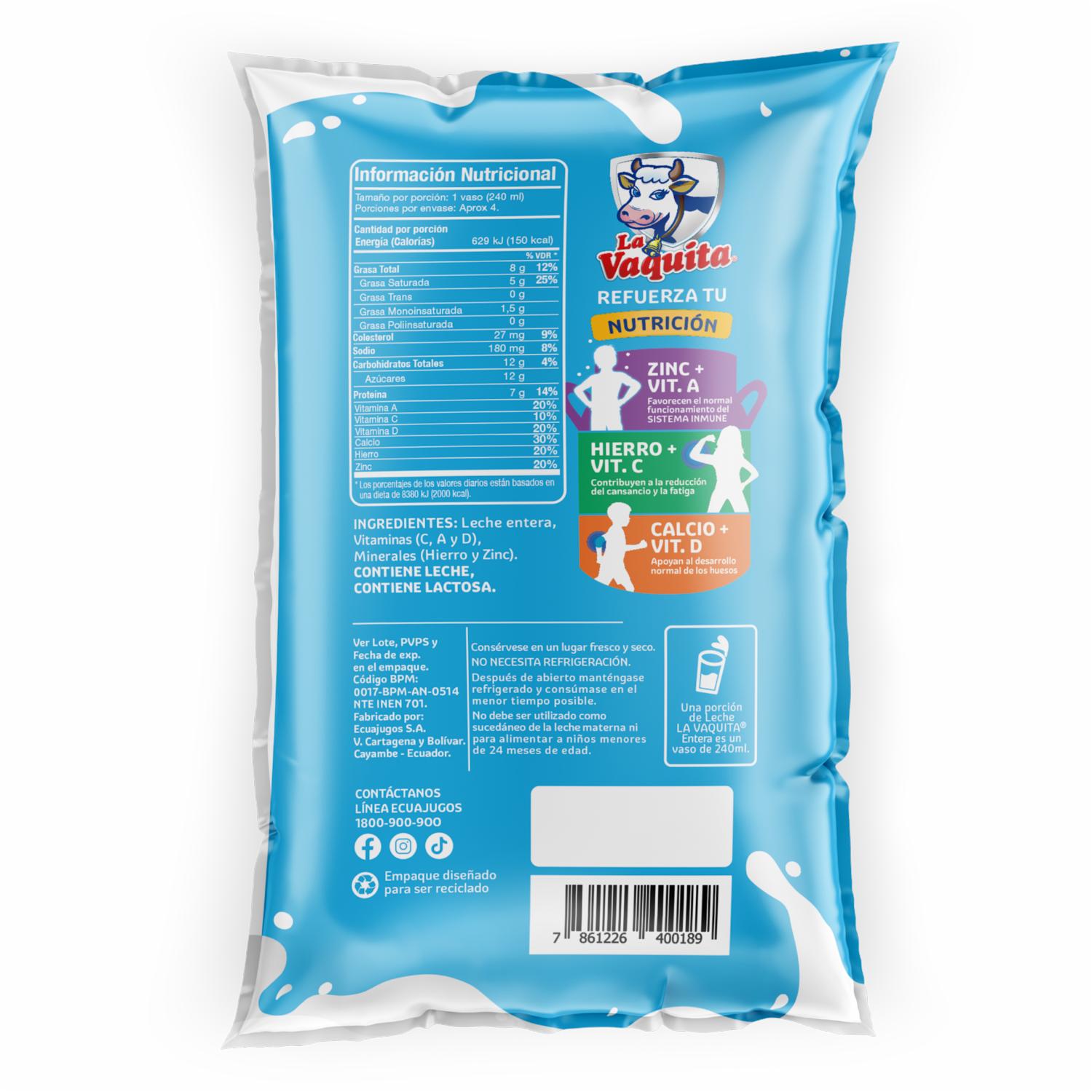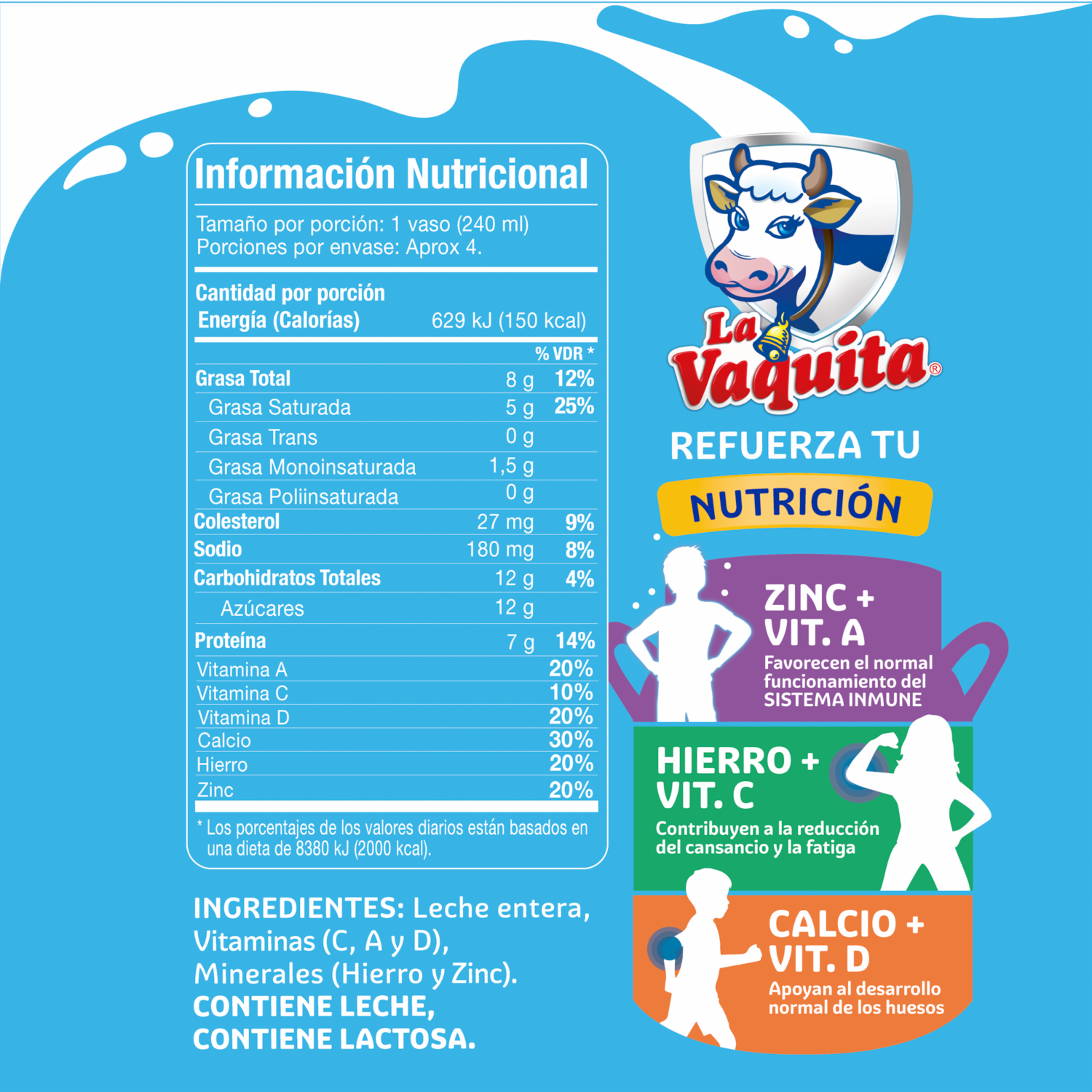 Leche Entera Fortificada LA VAQUITA 900 Ml – LA VAQUITA. Disponible en nuestros locales. Precio y stock pueden variar según la tienda.
