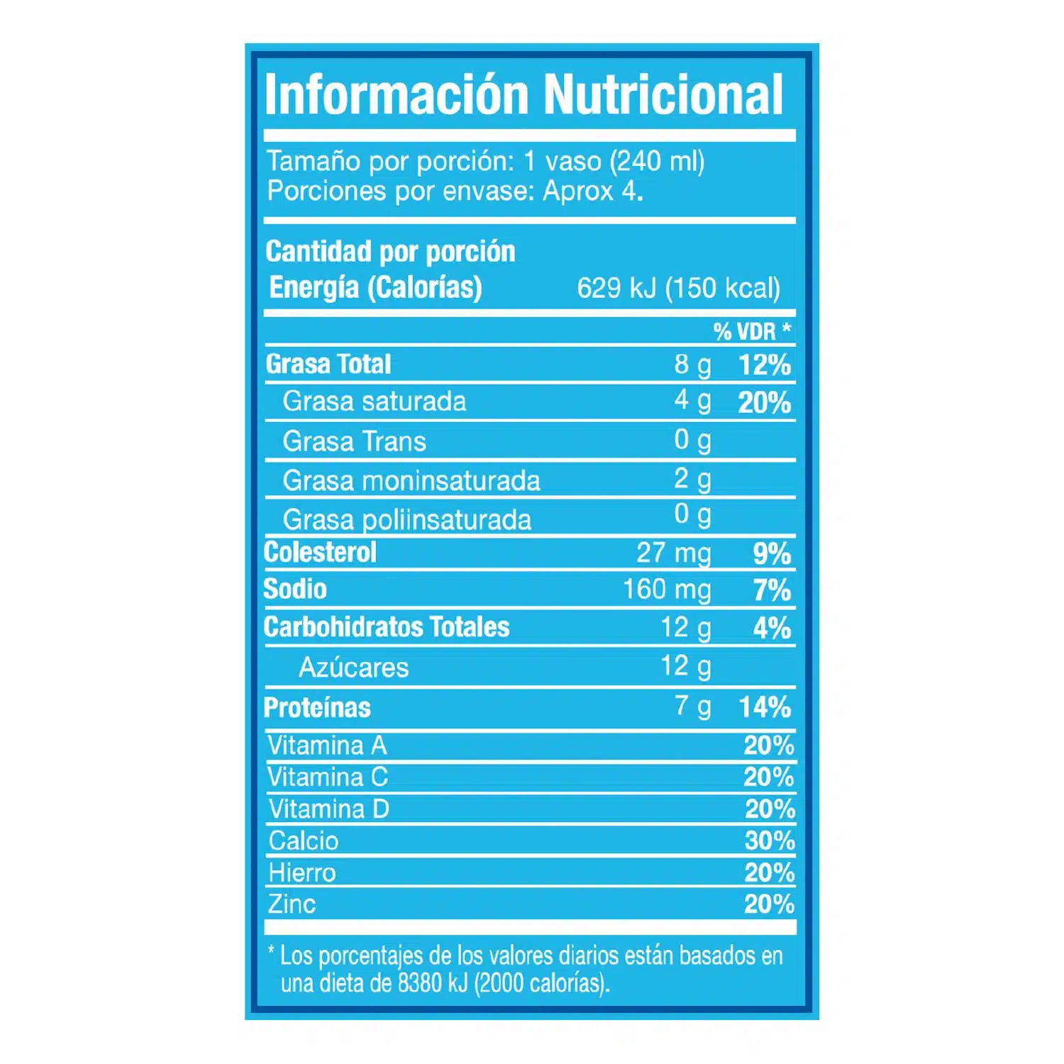 Fortificada con Vitaminas A, C y D, Hierro y Zinc