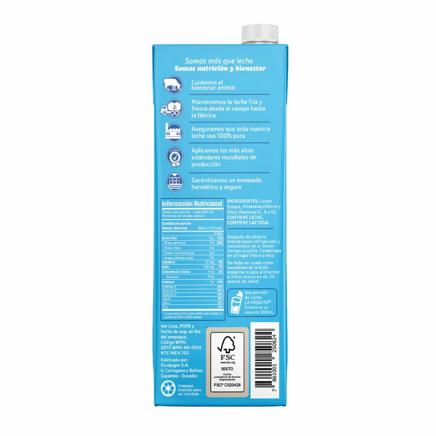 Leche Entera Larga Vida UHT LA VAQUITA 1000 Ml – LA VAQUITA. Disponible en nuestros locales. Precio y stock pueden variar según la tienda.