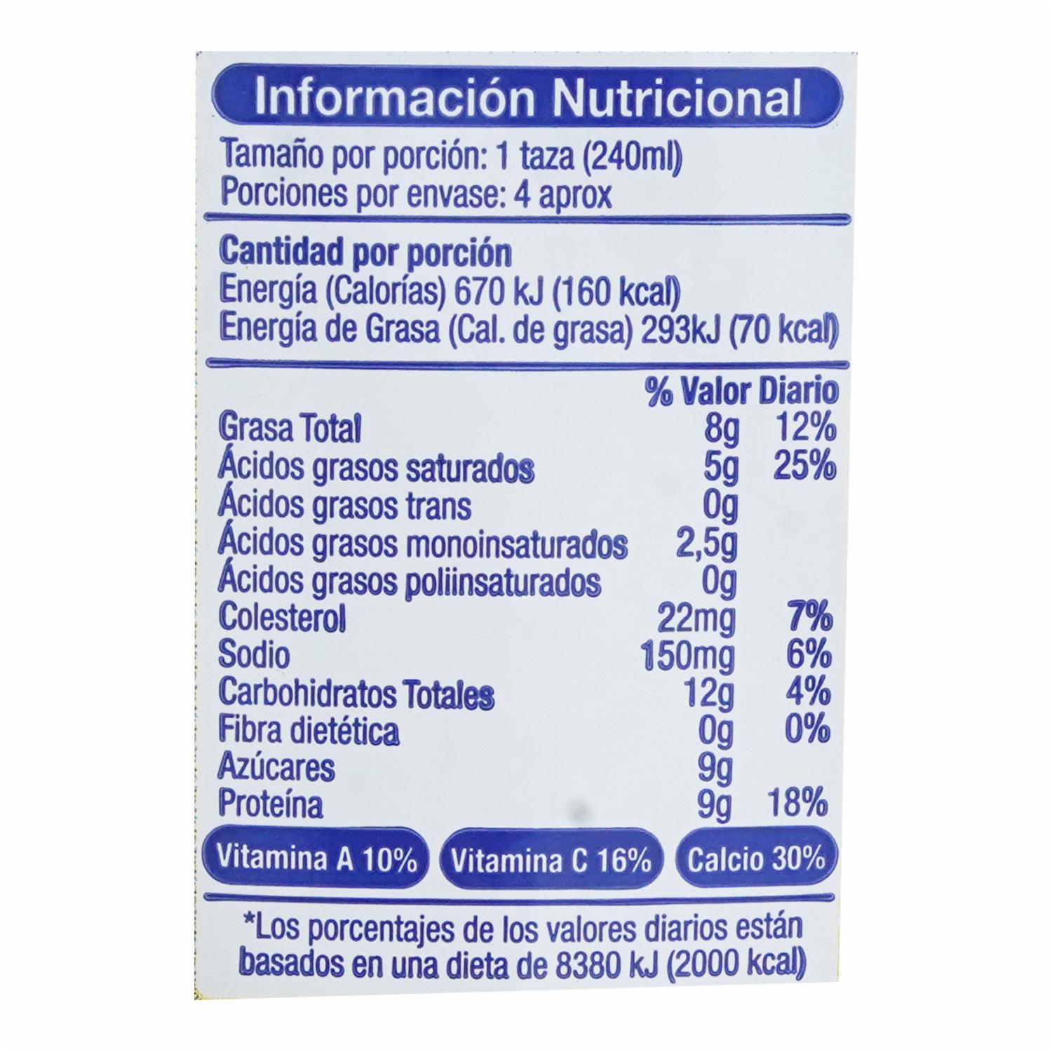 La Leche entera Vita, caracterizada principalmente por sus hidratos de carbono, lípidos, proteínas, vitaminas B12, B2, A, D, potasio, fósforo, magnesio y es considerada la fuente más importante de calcio biodisponible, convirtiéndola en un alimento perfecto para el desarrollo de huesos fuertes